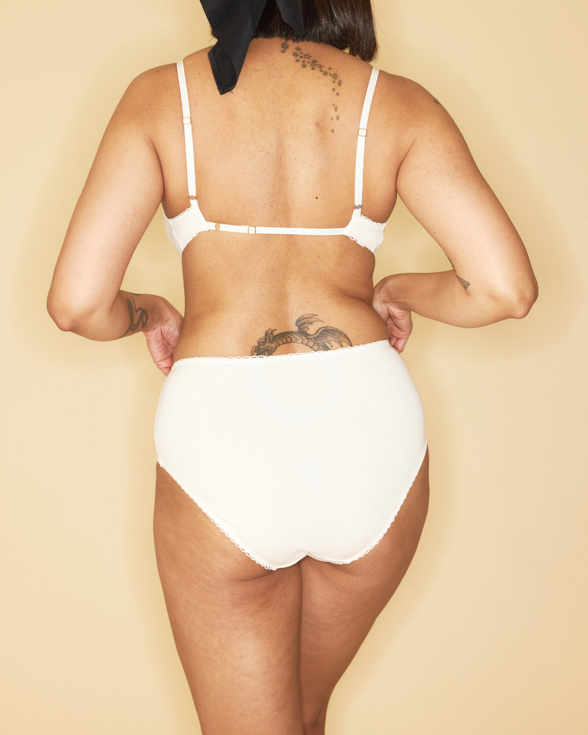 With feature trim, this knicker is created in classic white for everyday wear, and pairs with our 90210 Cotton Bra.