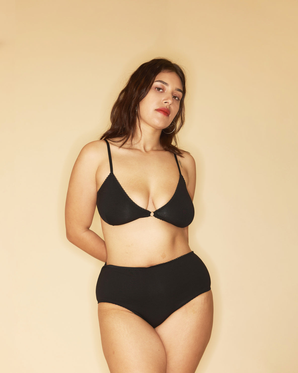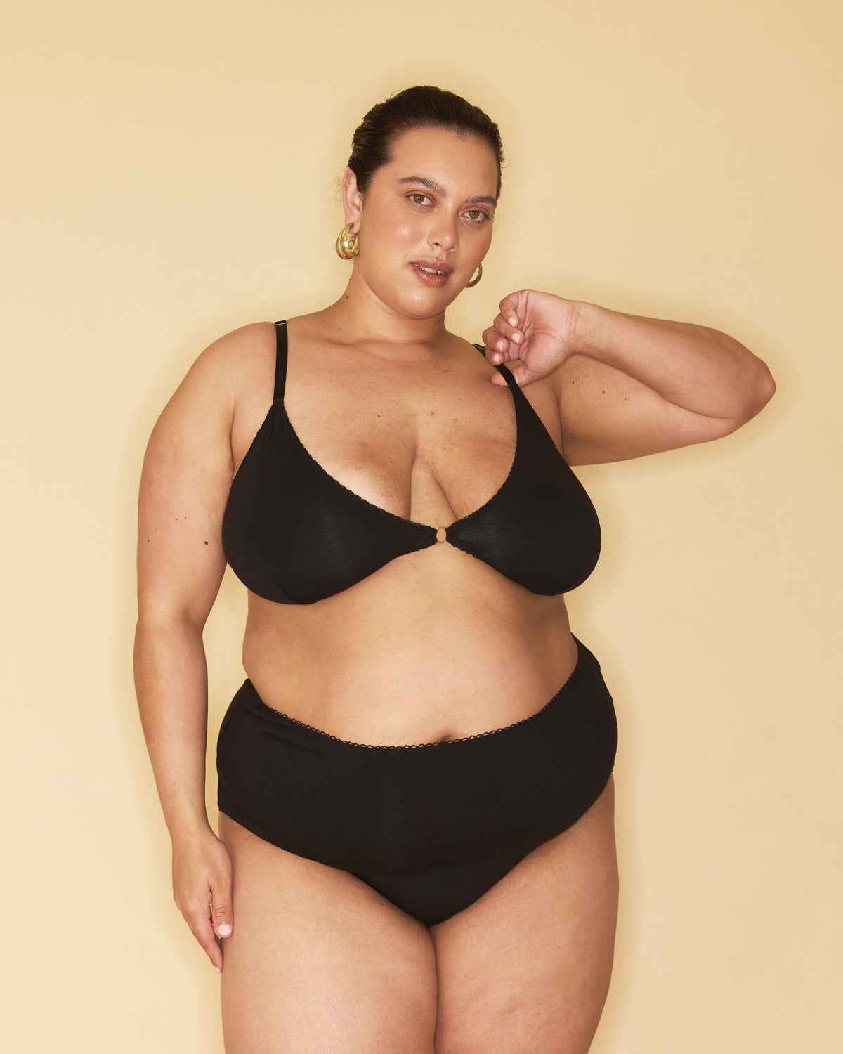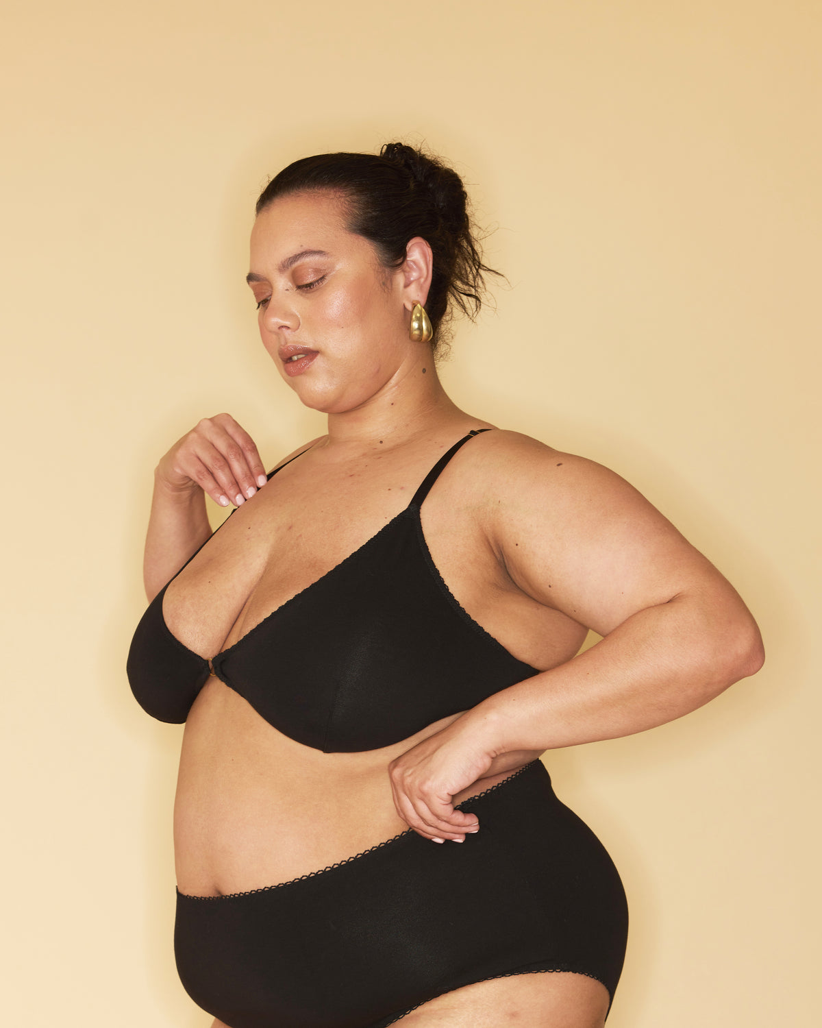 With feature trim, this bra is created in classic black for everyday wear, and pairs with our 90210 Cotton Knicker.