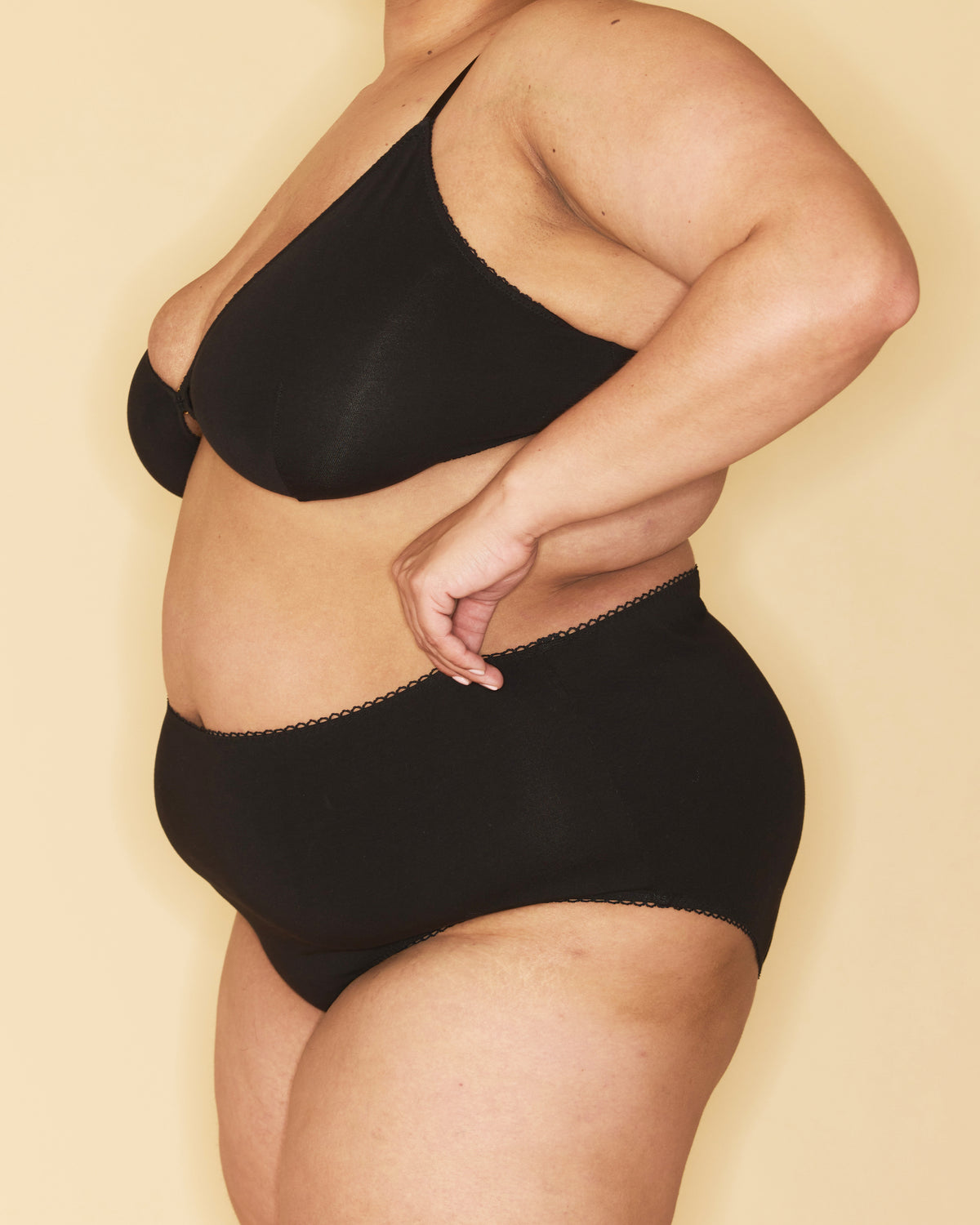 • Maximum coverage across the rear and hips, sitting comfortably on or just below the waistline
