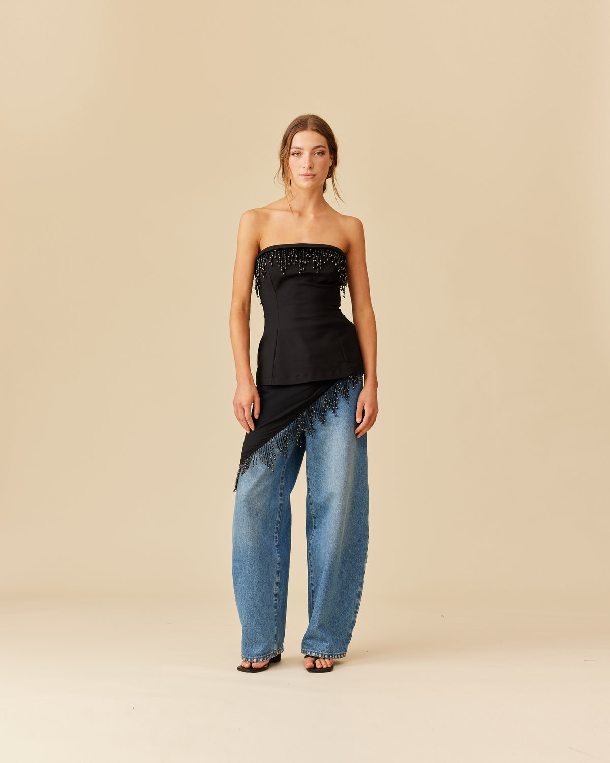 We currently do not offer custom sizing in knitwear or denim, as these styles are made offshore and require a higher quantity to be made, nor do we remake sold out styles in standard sizing. Please note that this is subject to fabric availability and this is not a made to measure service.