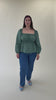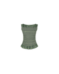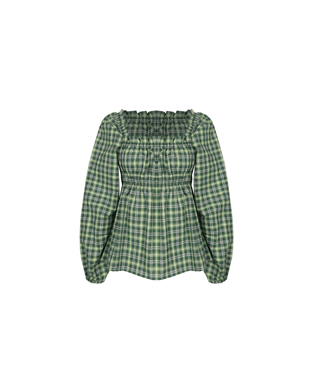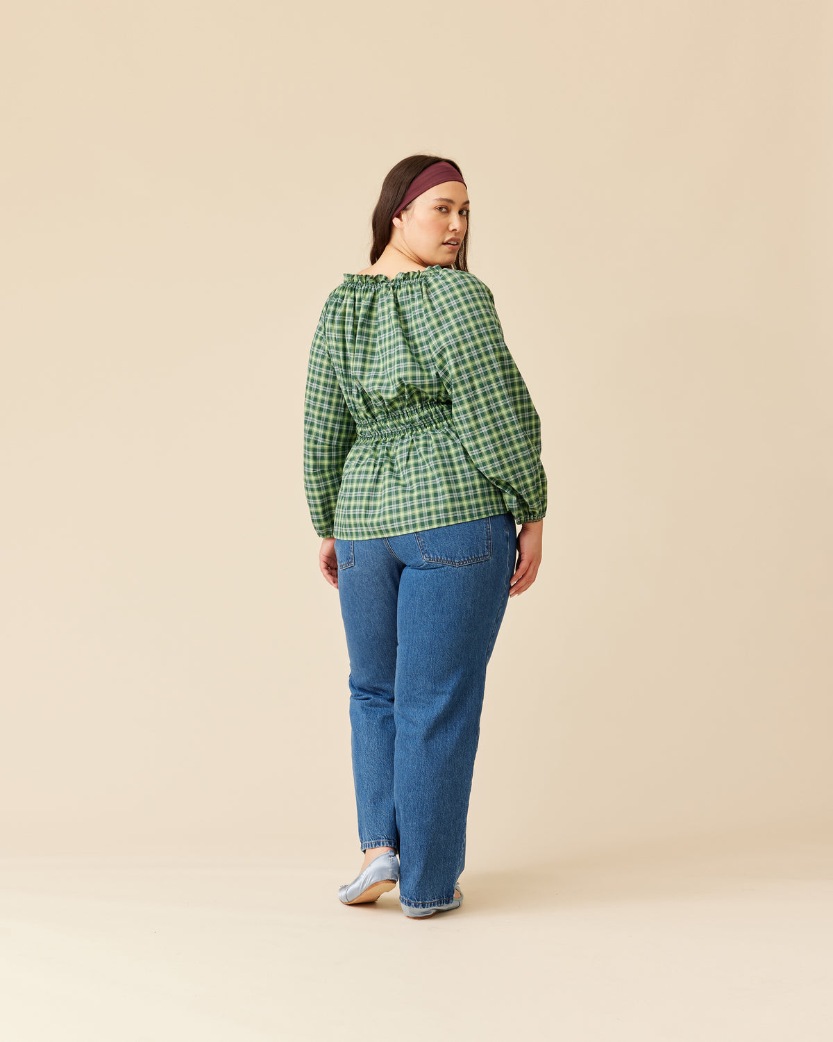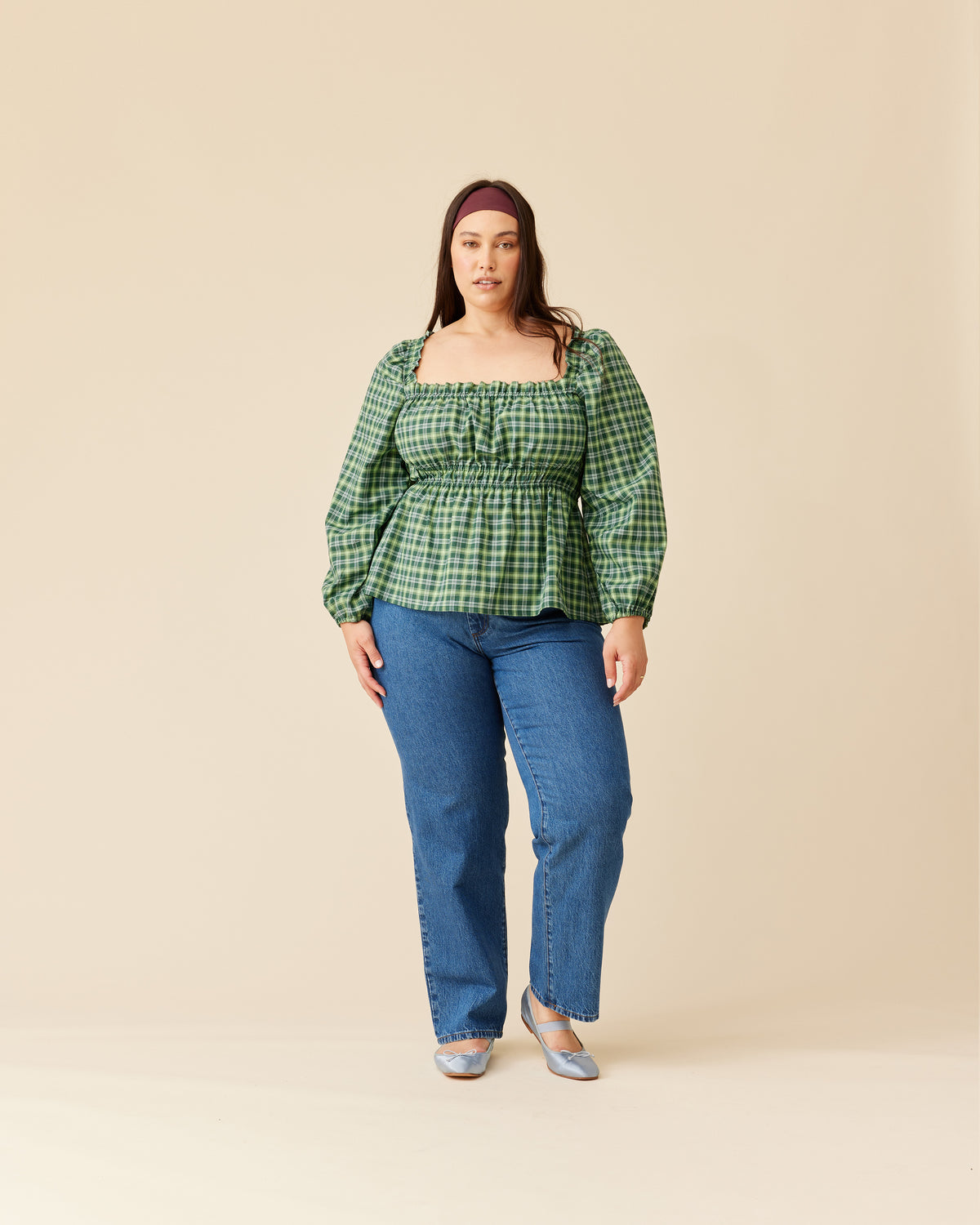 Long sleeve square-neck blouse with an elasticated bodice that falls to a floaty A-line shape. Designed in vibrant green tartan, this piece pairs perfectly with your favourite denim.