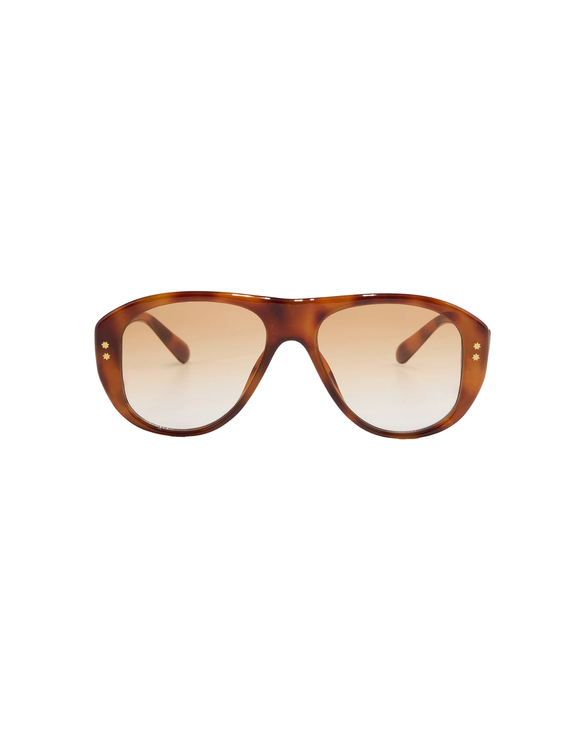 Statement 70's inspired aviator frames, designed in a tortoiseshell colour with amber coloured lenses.