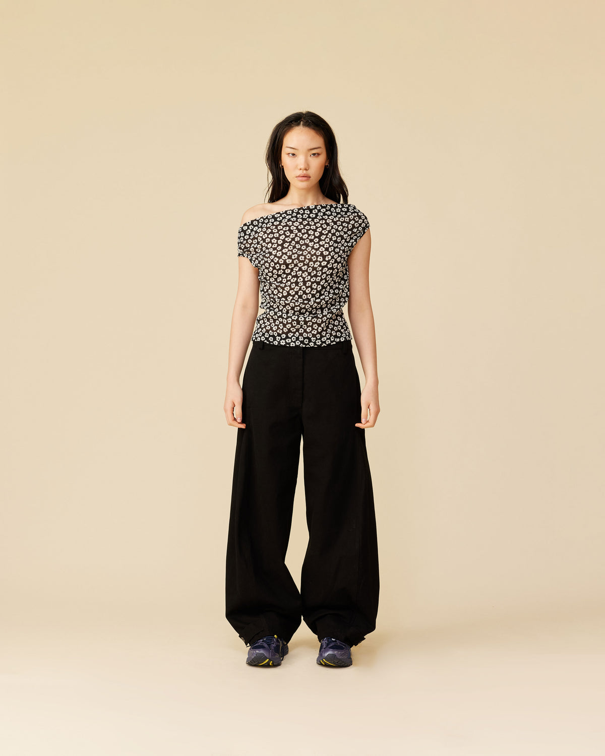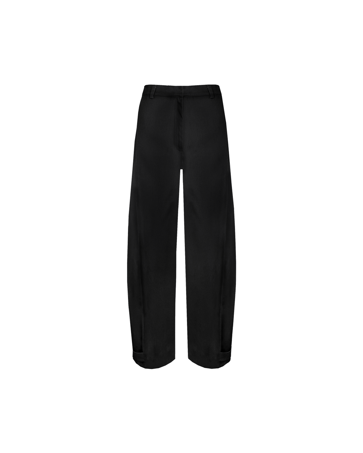 Barrel leg pant designed in a mid-weight cotton with a suede-like hand-feel. These pants have the option to be cuffed or uncuffed at the hem, with the use of a tab and button.