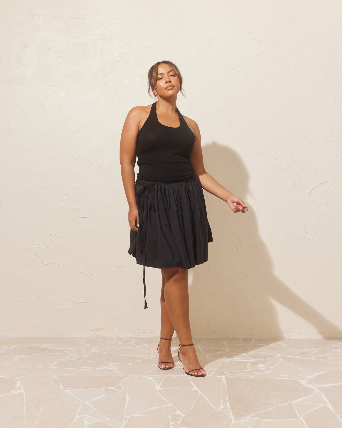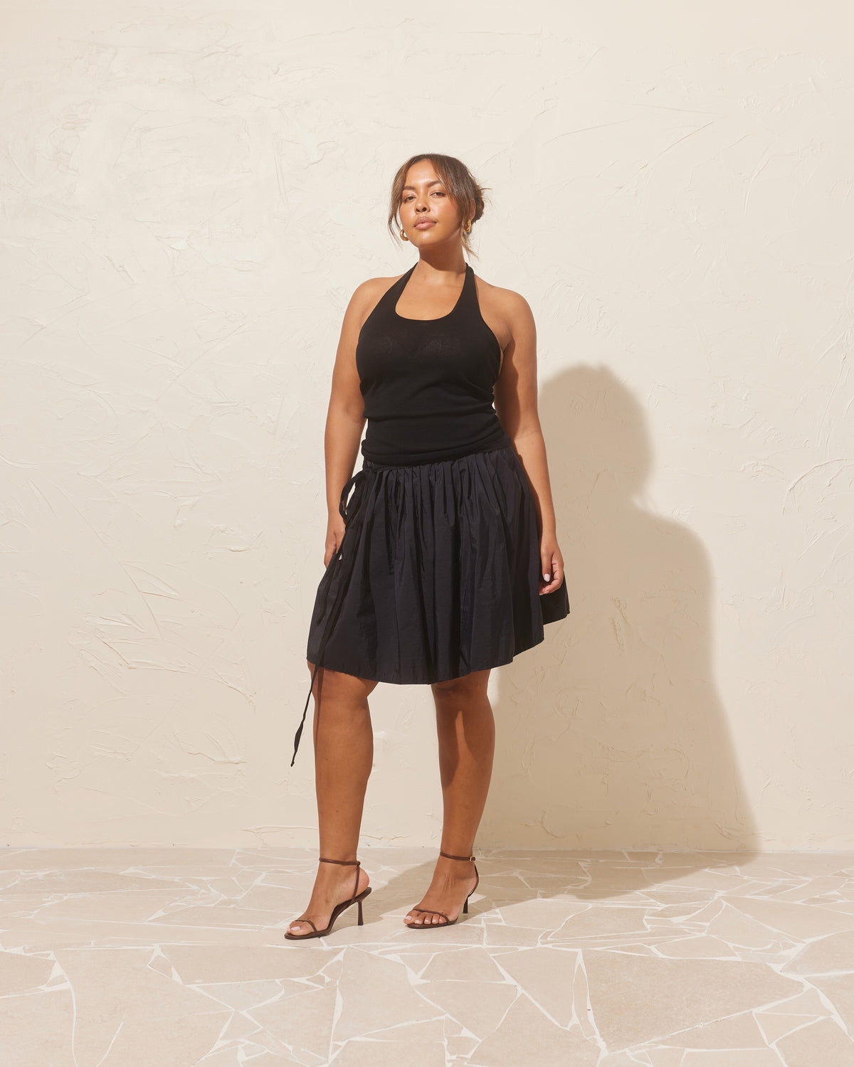 Ballerina-inspired skirt designed in a textured light-weight fabric with a slight sheen. This skirt has 2 waist ties, with pleat detailing at that waist that completes the Ballerina vibe.