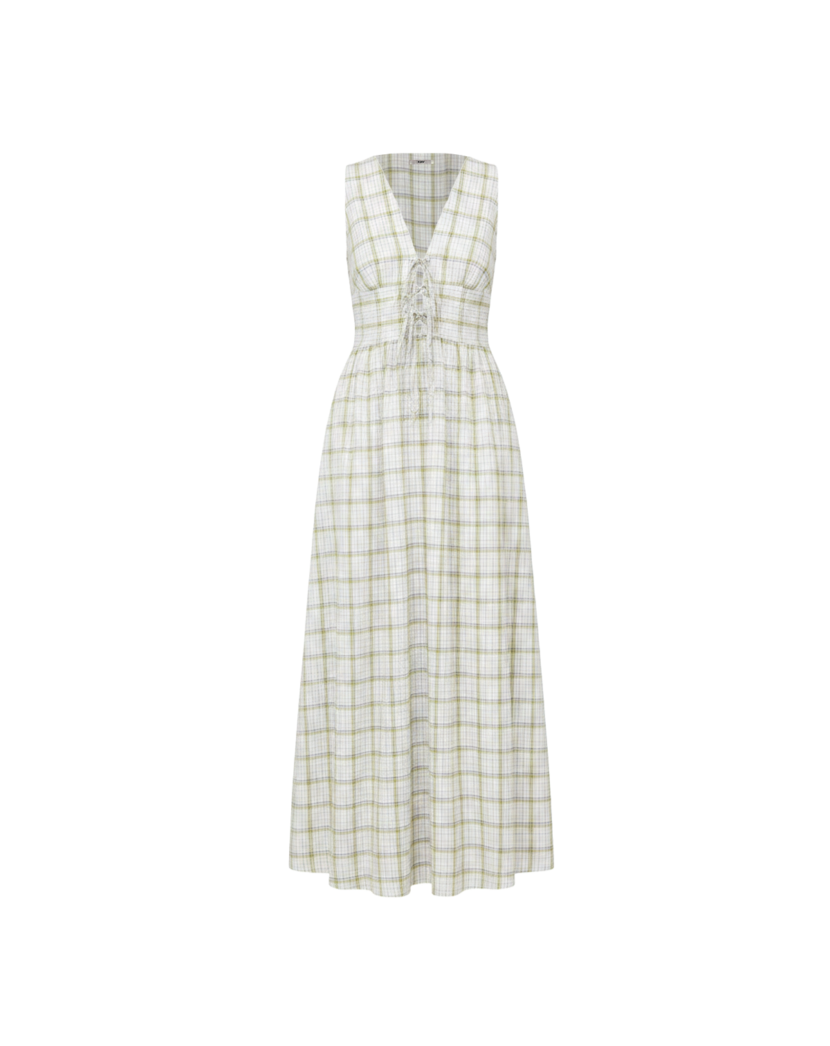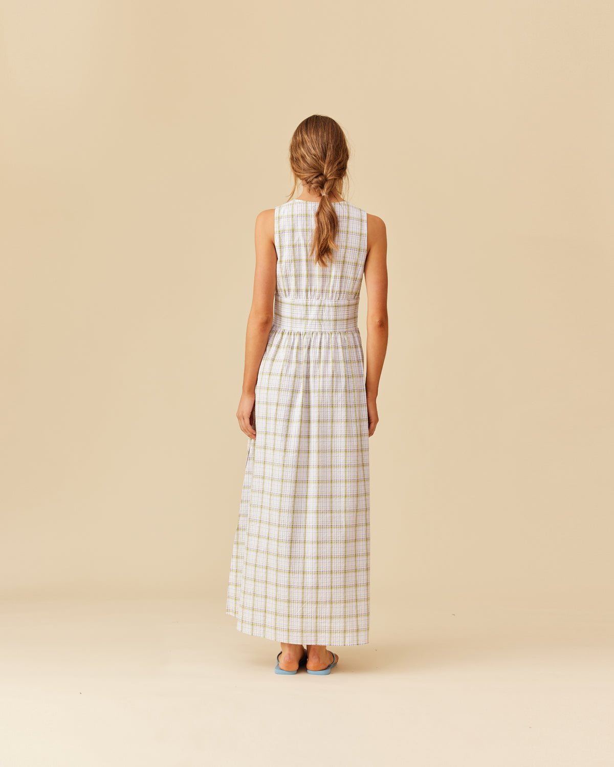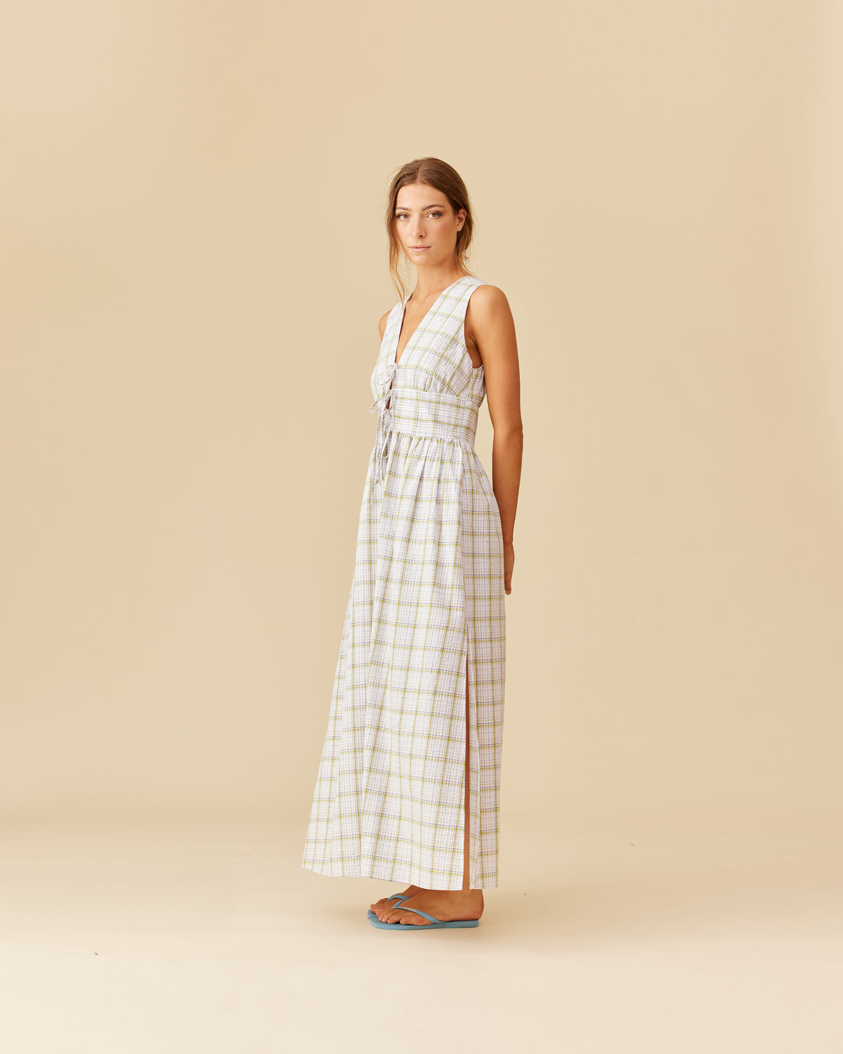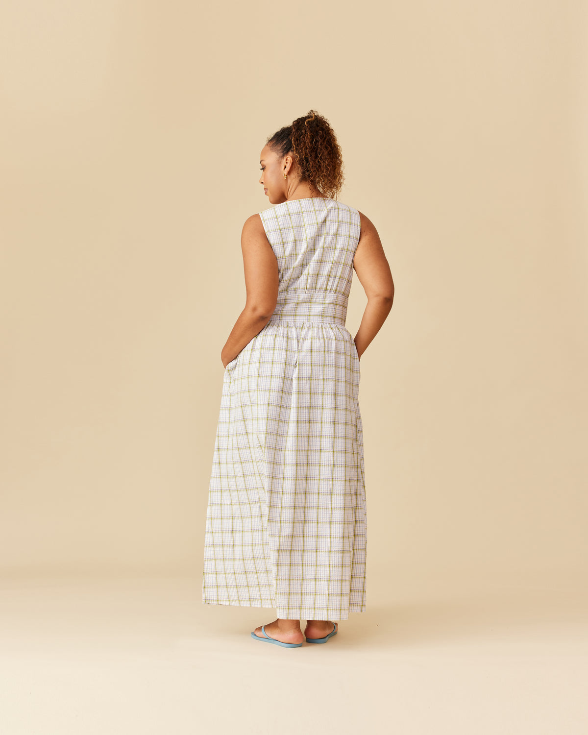 Sleeveless sundress designed in our summery hydrangea tartan. This dress features front tie details and a structured waist which falls into an A-line skirt, giving it a floaty, beachy look.