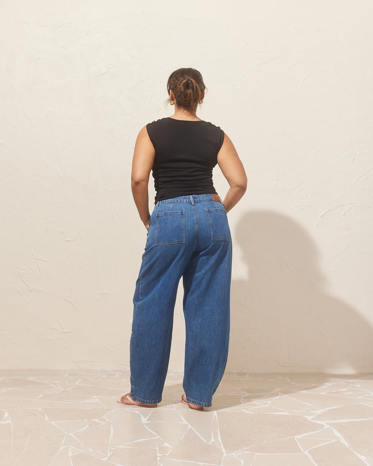 This measurement is the widest part of your bum, not actually where your hip bones are. When you hold the tape measure in a circle, if you shimmy it up and down over your bum it shouldn’t get any bigger. It can be helpful to turn side-on to the mirror when you do this as it’s easier to see the most sticky-outy bit.