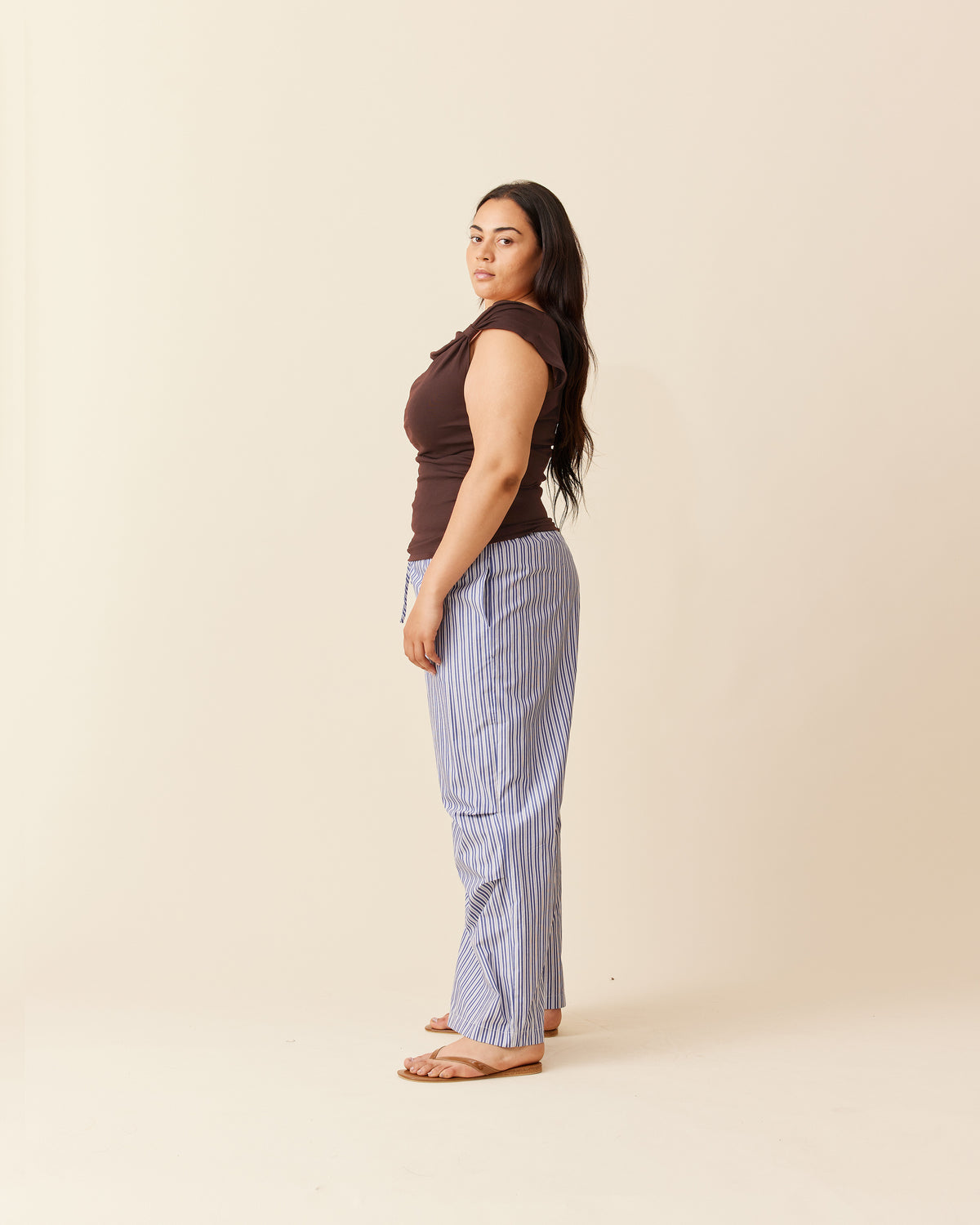 Cowl neck knitted tank top, crafted in a mid-weight knit. You can change the neckline of this top by adjusting the two fabric loops at the shoulders, to be more or less of a cowl look, and also wear it on or off the shoulder.