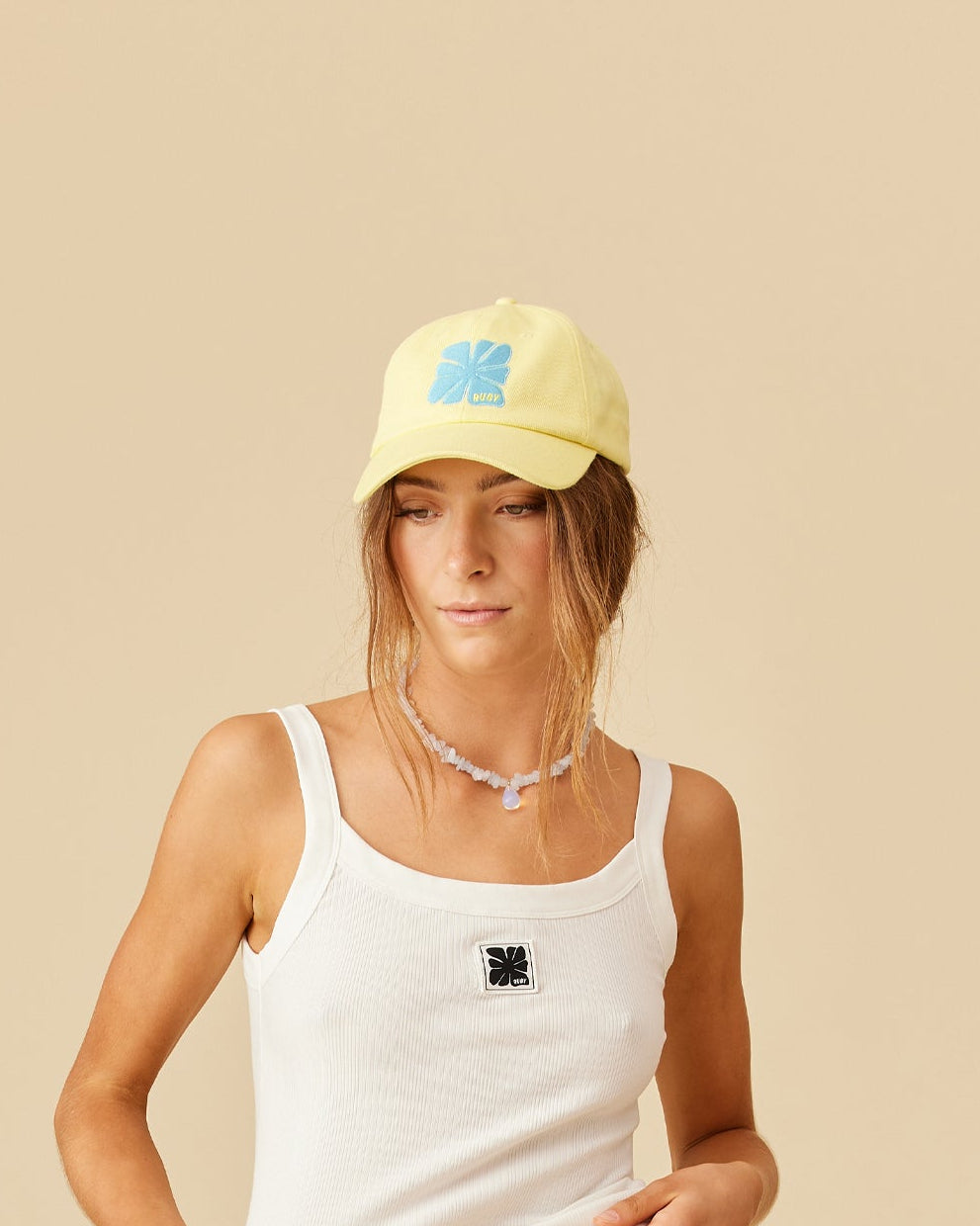 The perfect finishing touch to any outfit, introducing our new Butterfly embroidered cap. A butter yellow cotton with contrasting blue RUBY flower logo embroidered on the front.