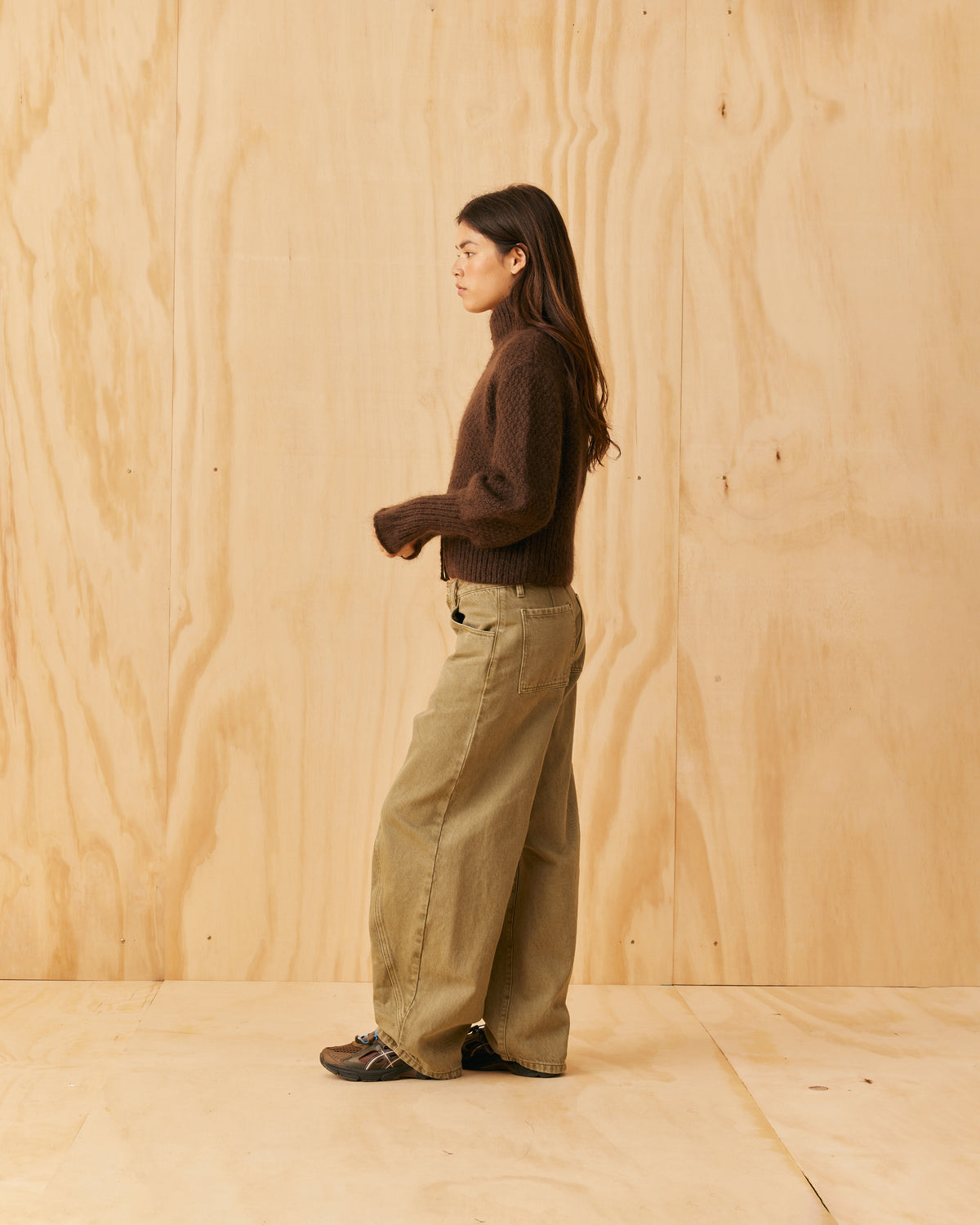 Barrel-leg jean designed in our sage denim. Sits mid-waisted and features panel detailing down the front that wraps to the side seam.