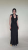 Sheer chiffon maxi gown with a plunge cowl neck, halter silhouette, and low back. Designed with cascading ruffles for soft movement and a statement finish.