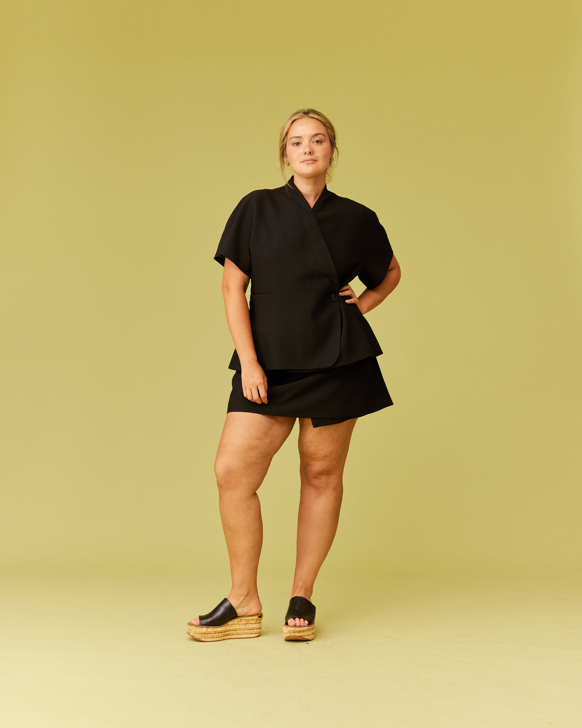 Introducing the Coco Mini Skirt ~ with the Rubette favourite wrap panel design and feature front pocket. Designed in a butter mid-weight suiting fabric, this is the perfect pairing to our Coco Short Sleeve Blazer.