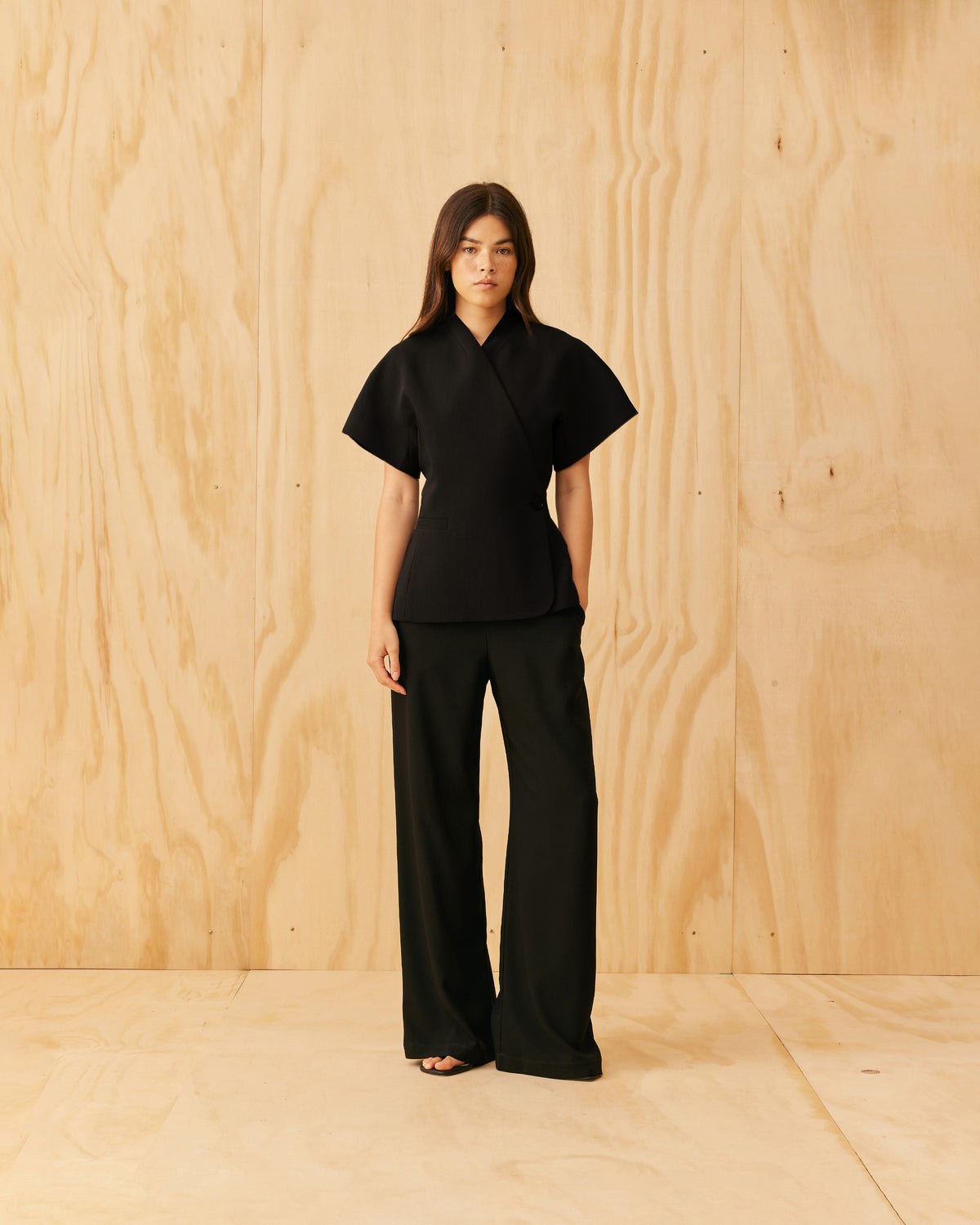 The Coco Blazer now in a short sleeve ~ A collarless blazer designed in a mid-weight suiting fabric. Make it a set with the Sasha Wrap Pant or pair with your favourite denim.