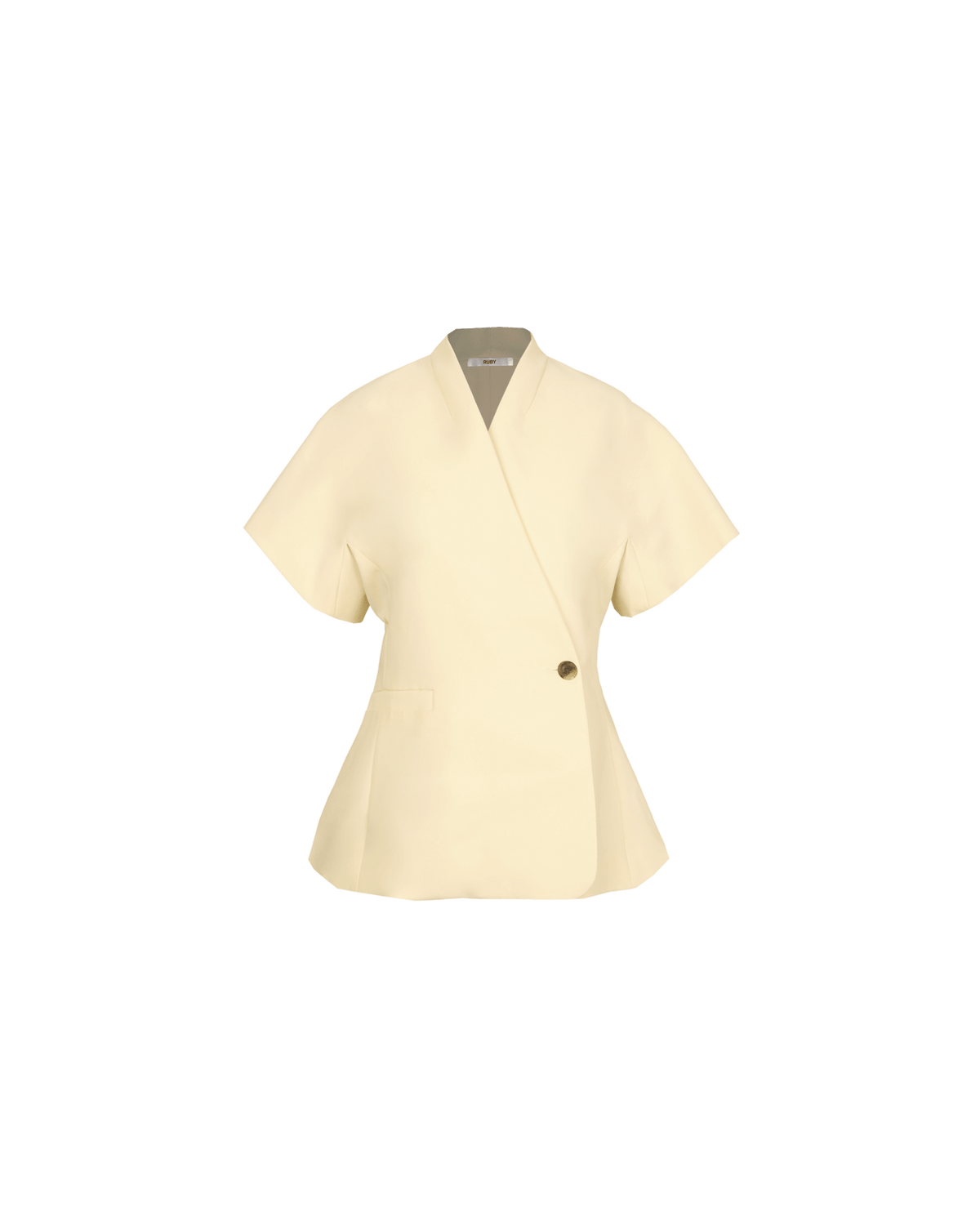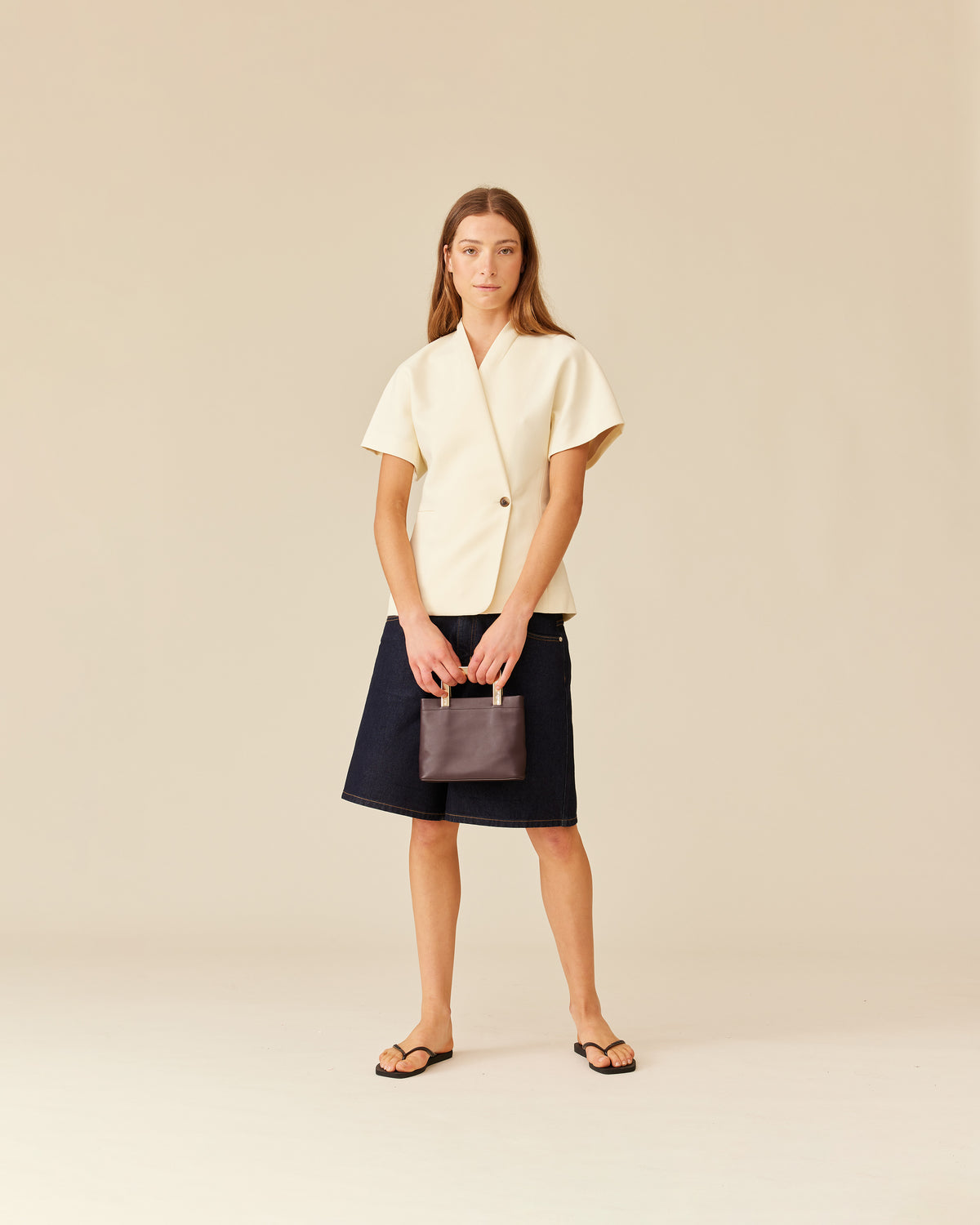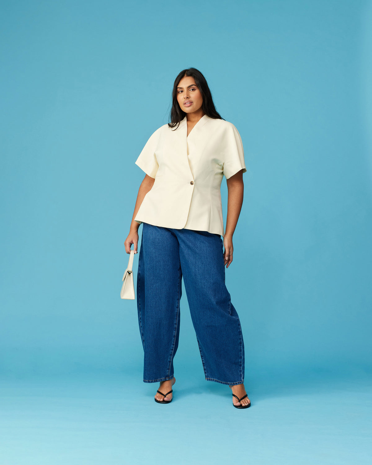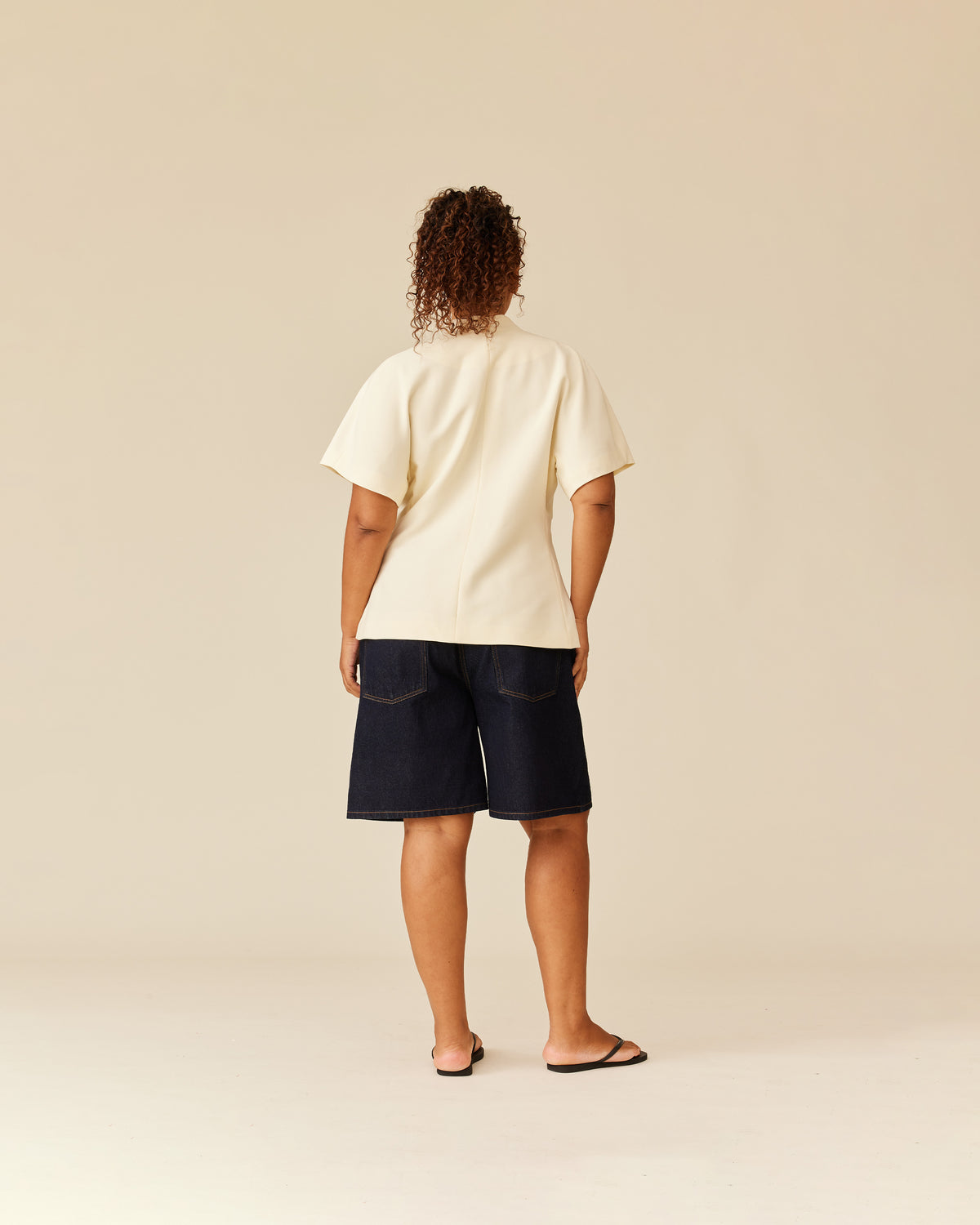 The Coco Blazer now in a short sleeve ~ A collarless blazer designed in a mid-weight suiting fabric. Pair with your favourite denim or suit trouser for an effortlessly polished look.