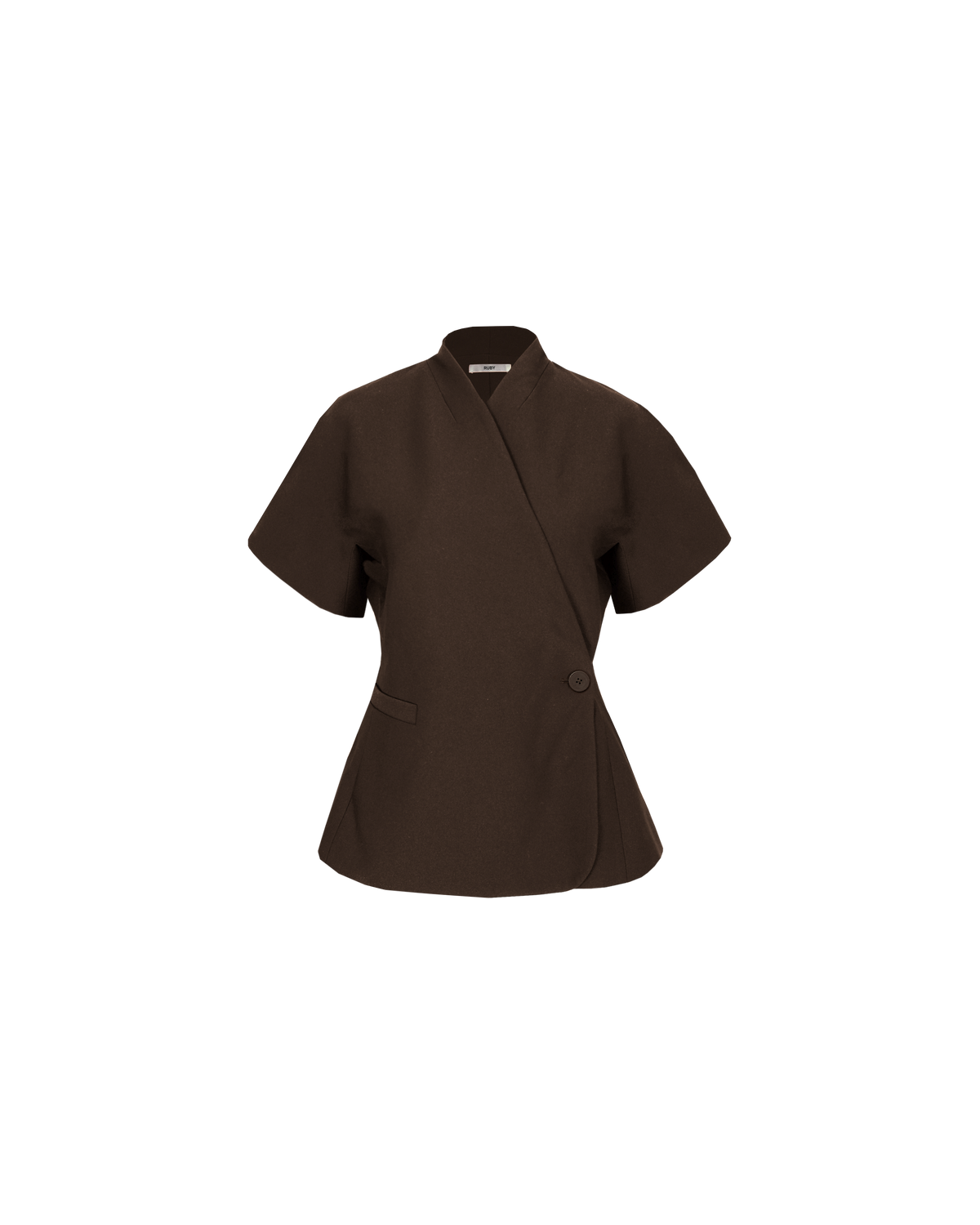 The Coco Blazer now in a short sleeve ~ A collarless blazer designed in a mid-weight suiting fabric. Pair with your favourite denim or suit trouser for an effortlessly polished look.