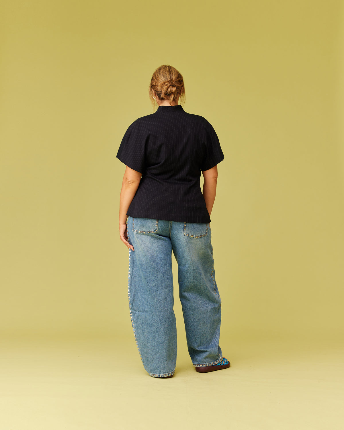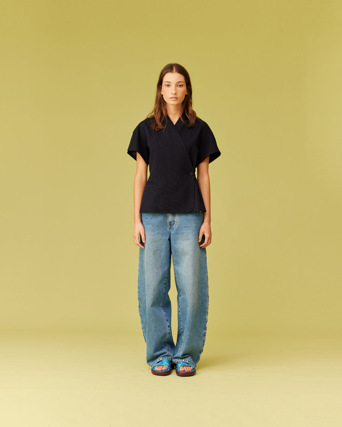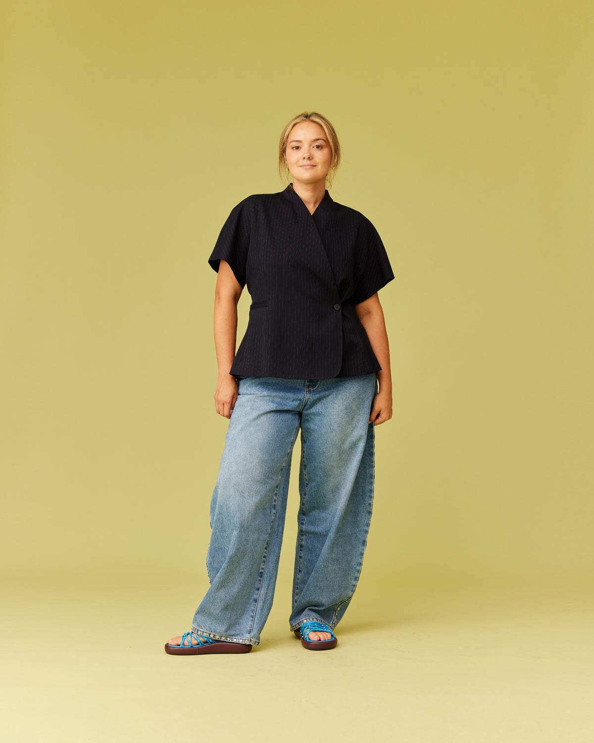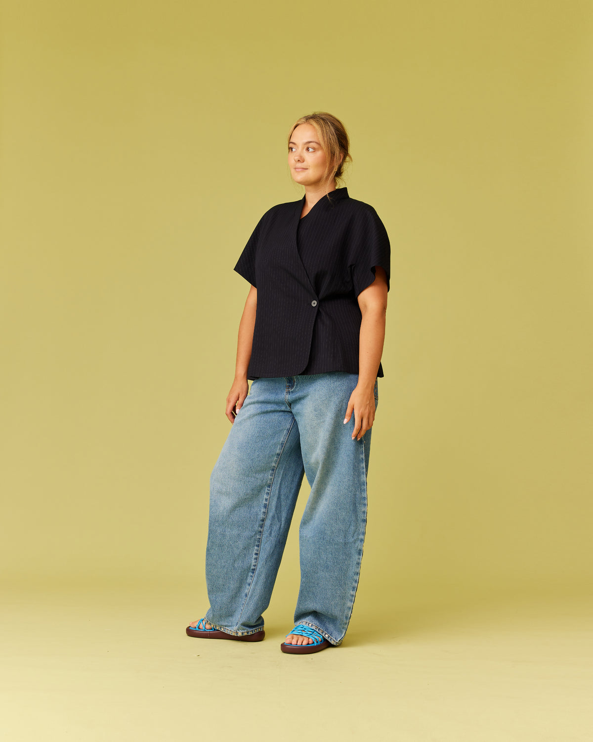 The Coco Blazer now in a short sleeve ~ A collarless blazer designed in a mid-weight suiting fabric. Pair with your favourite denim or suit trouser for an effortlessly polished look.