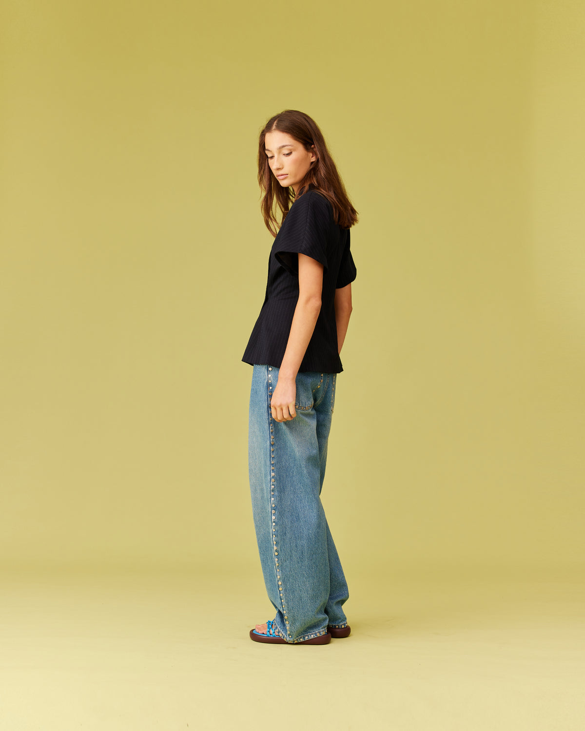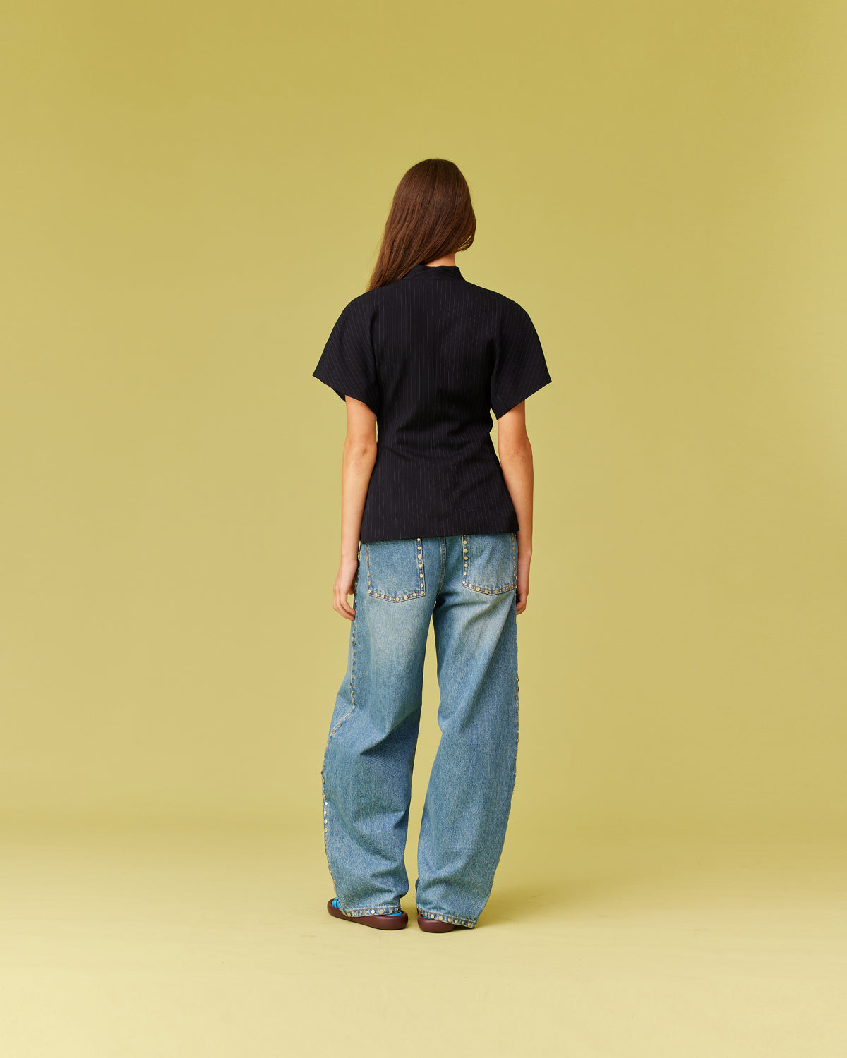 We currently do not offer custom sizing in knitwear or denim, as these styles are made offshore and require a higher quantity to be made, nor do we remake sold out styles in standard sizing. Please note that this is subject to fabric availability and this is not a made to measure service.
