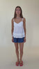 Embroidered lace trimmed camisole with a sweetheart neckline and a floaty tiered hem. This top turns to reveal a bow tie at the back which compliments the romantic look.