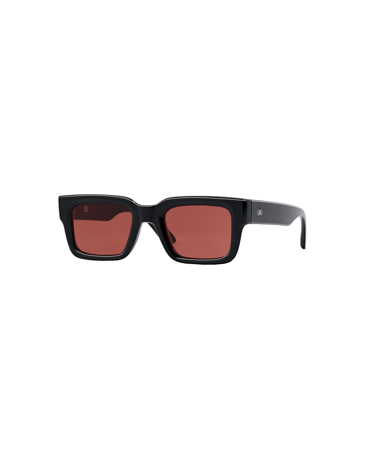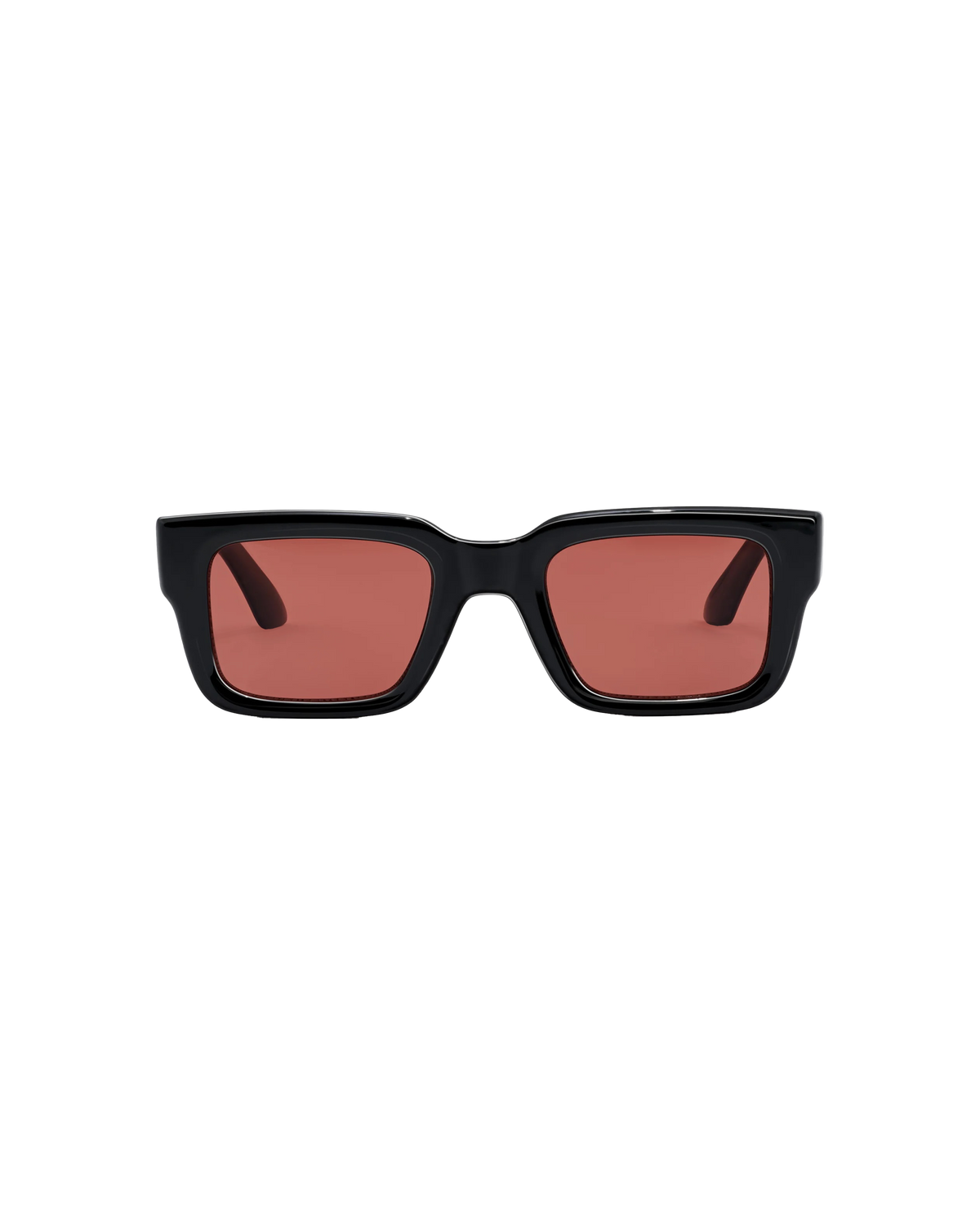 Bold, square frame style with black frame and cherry cola coloured lenses.