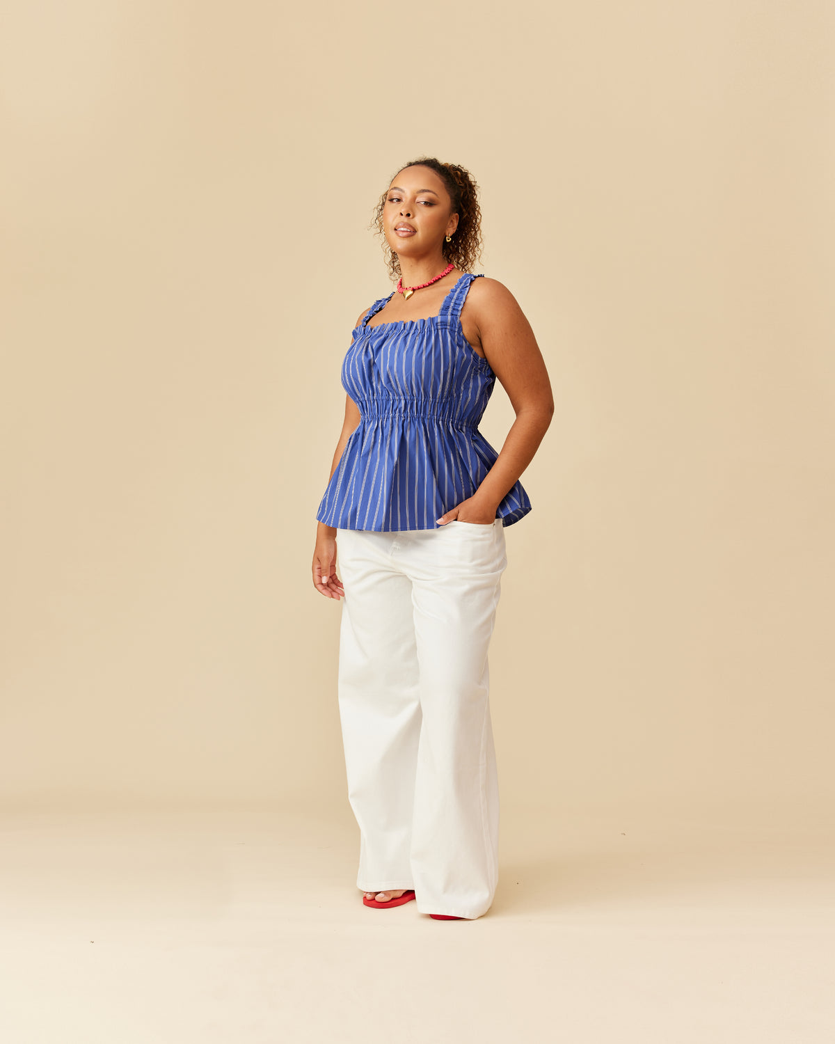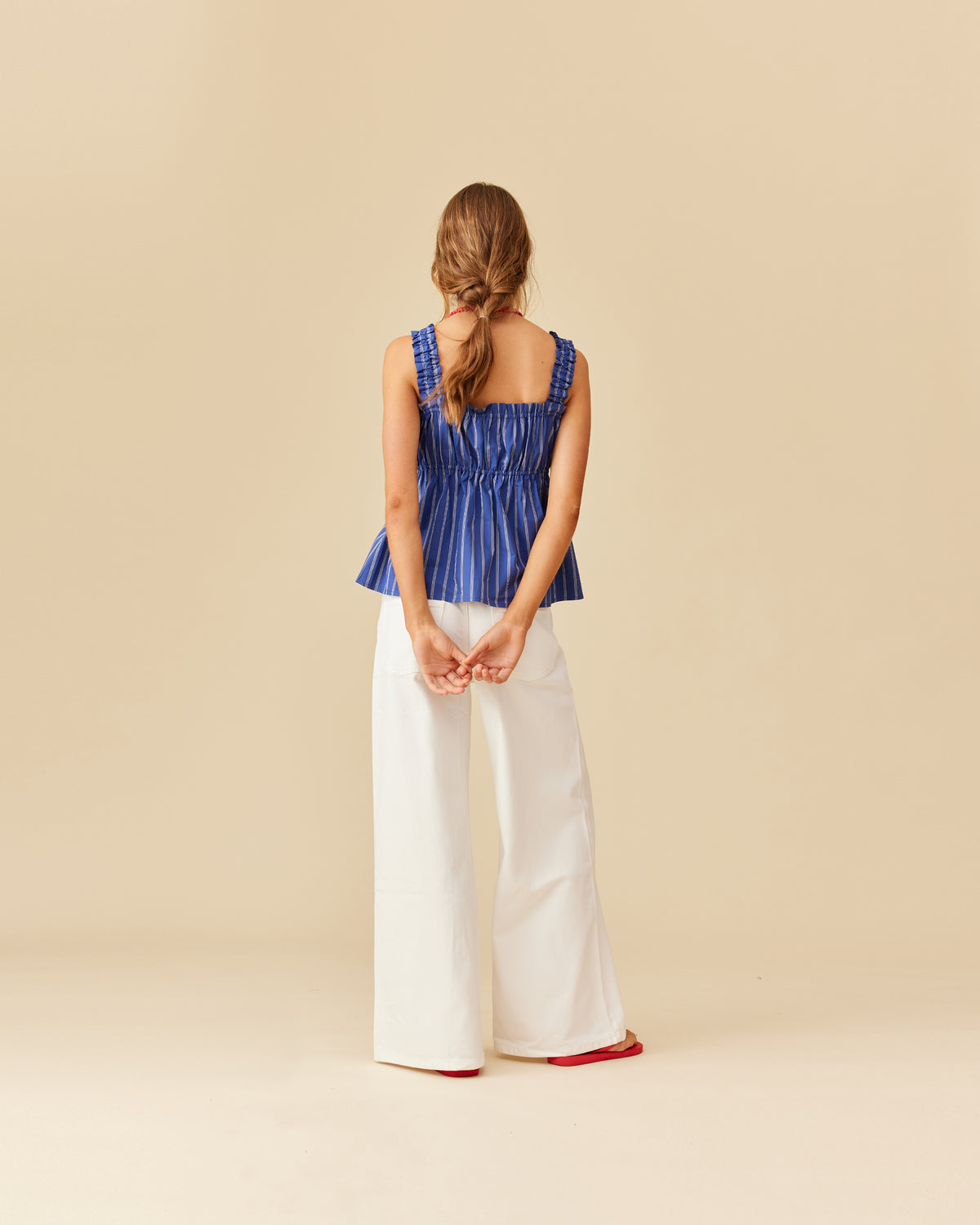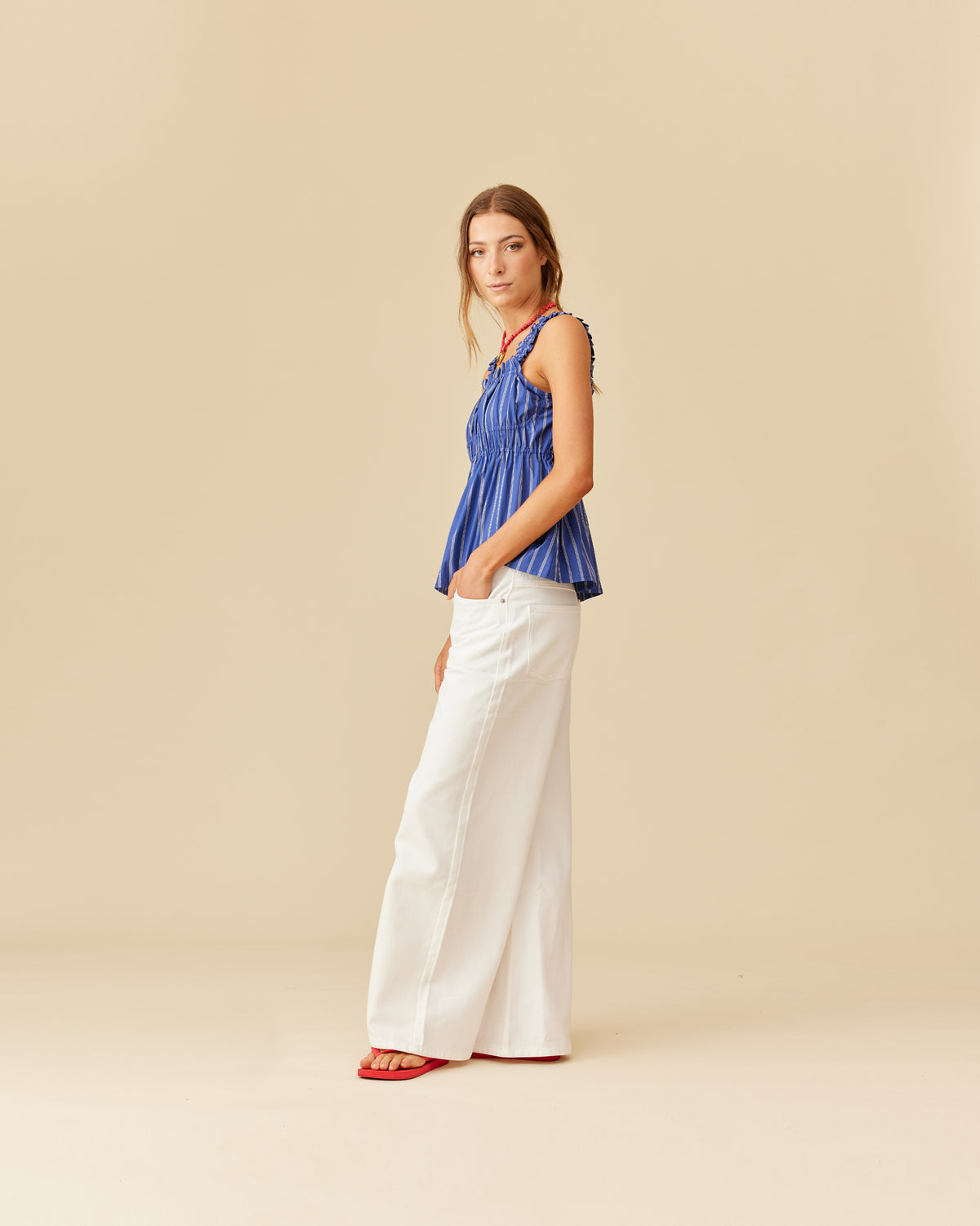 Wide leg, mid-rise denim jeans designed in a crisp white denim with a double yoke on the back. The perfect jean to pair with your favourite top.