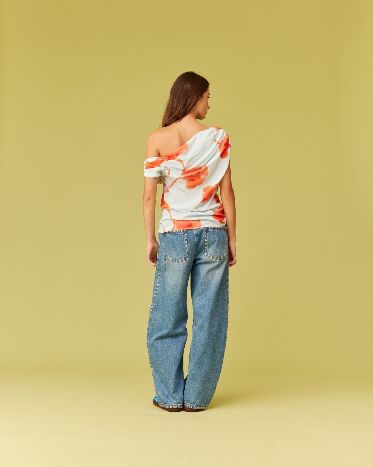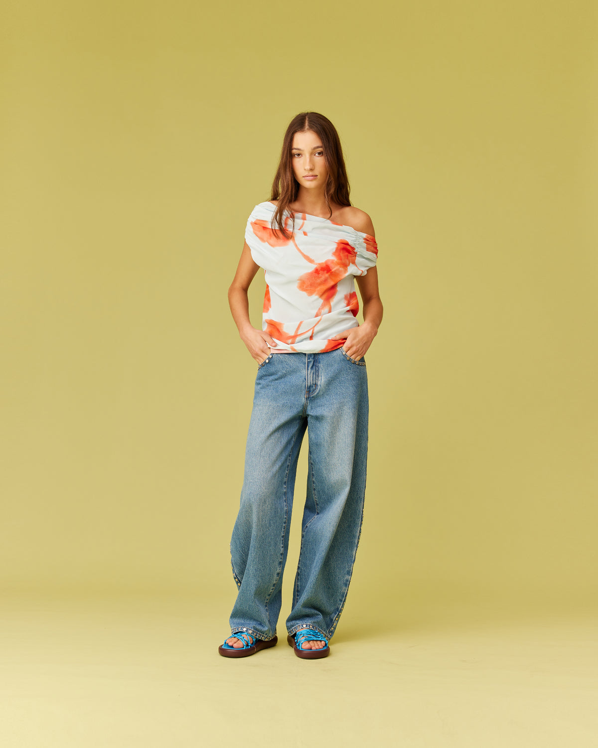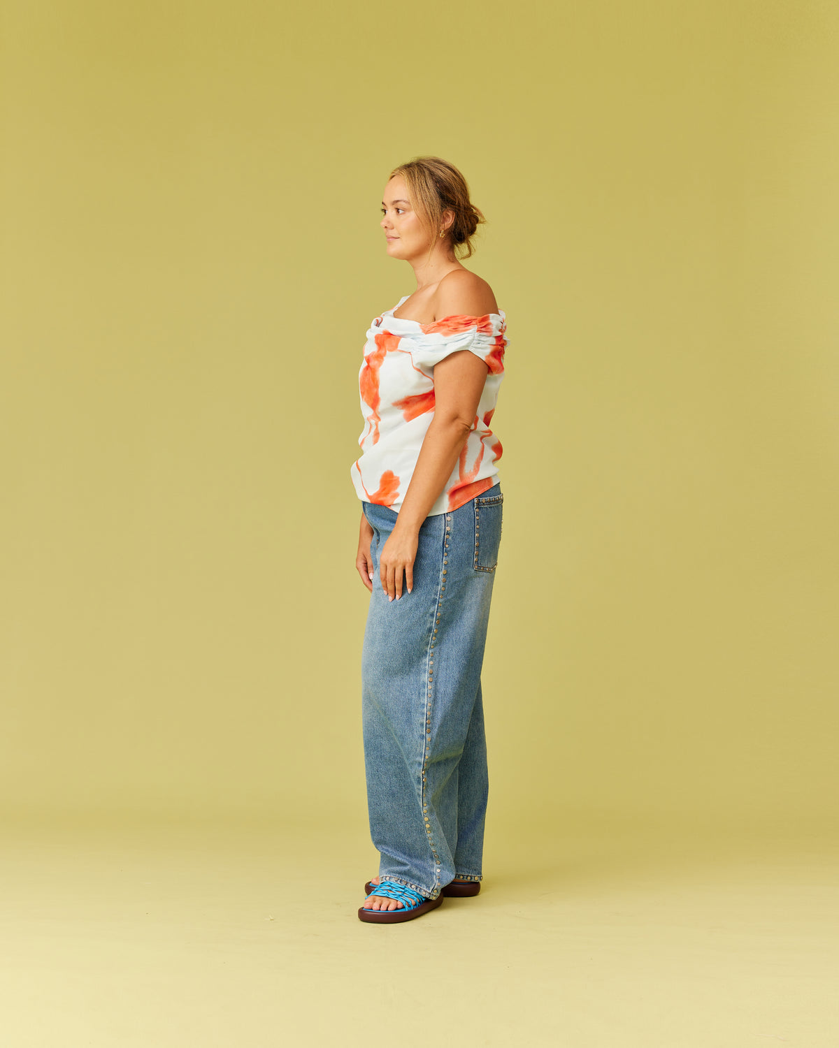 A new twist on our Emma Knit Top, with the classic off shoulder style designed in a lightweight viscose. Featuring a gather detail on the sleeve, and crafted in our vibrant blue lagoon print, this top is perfect when paired with denim or your favourite skirt.