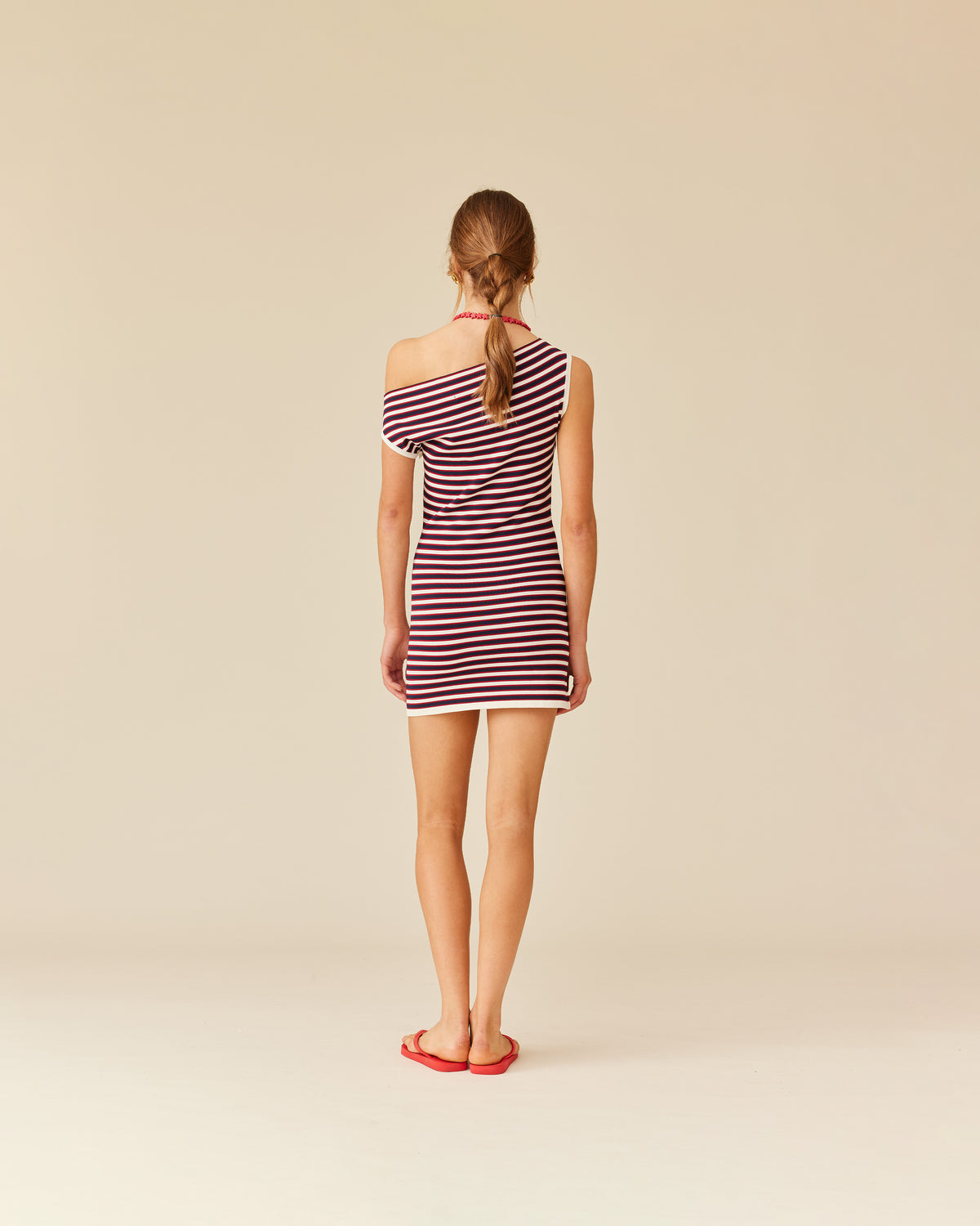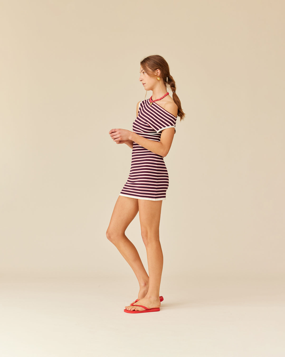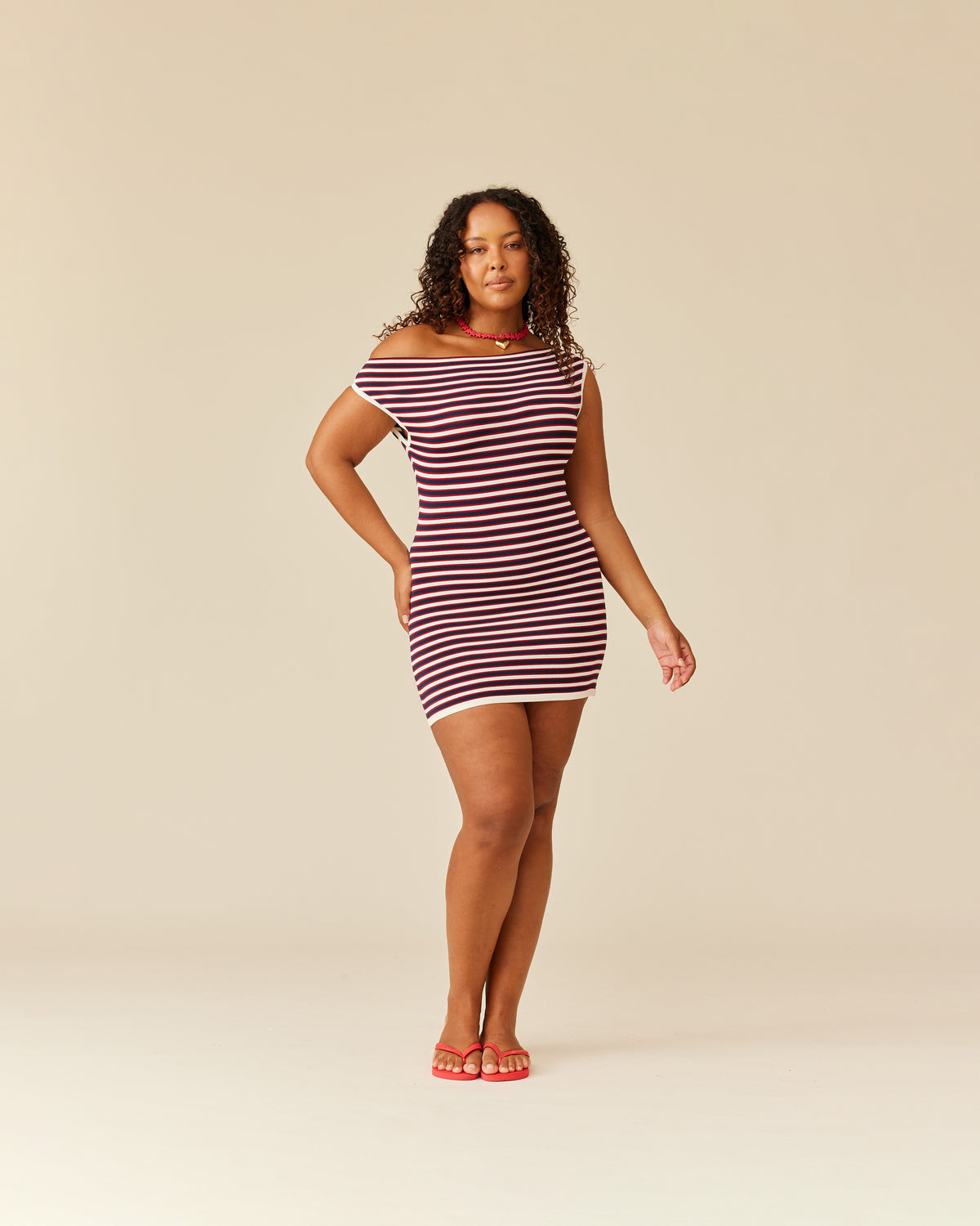 An update on our Emma Knit Top, now in mini dress version crafted in a mid-weight riviera striped knit. This dress is simple yet elevated and can be worn as a dress or layered over pants.
