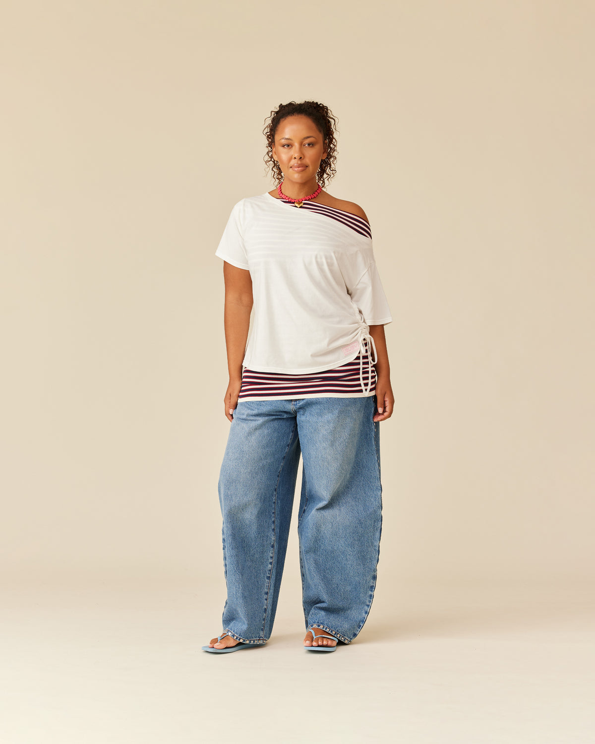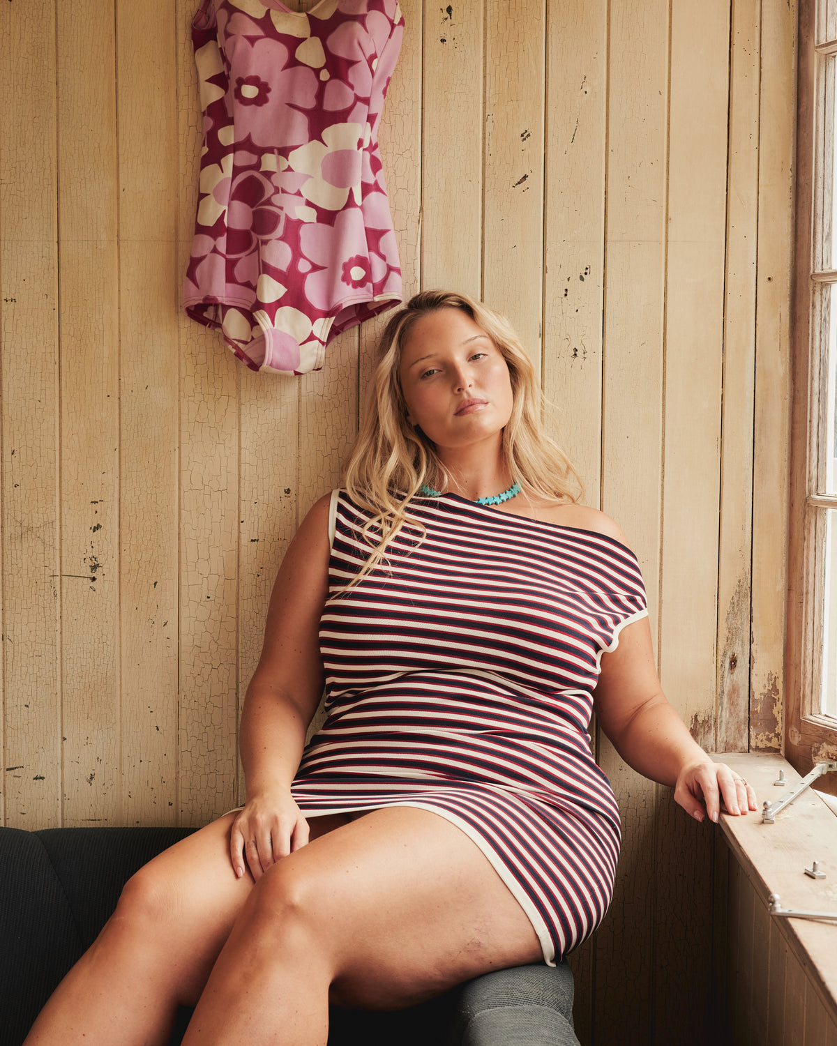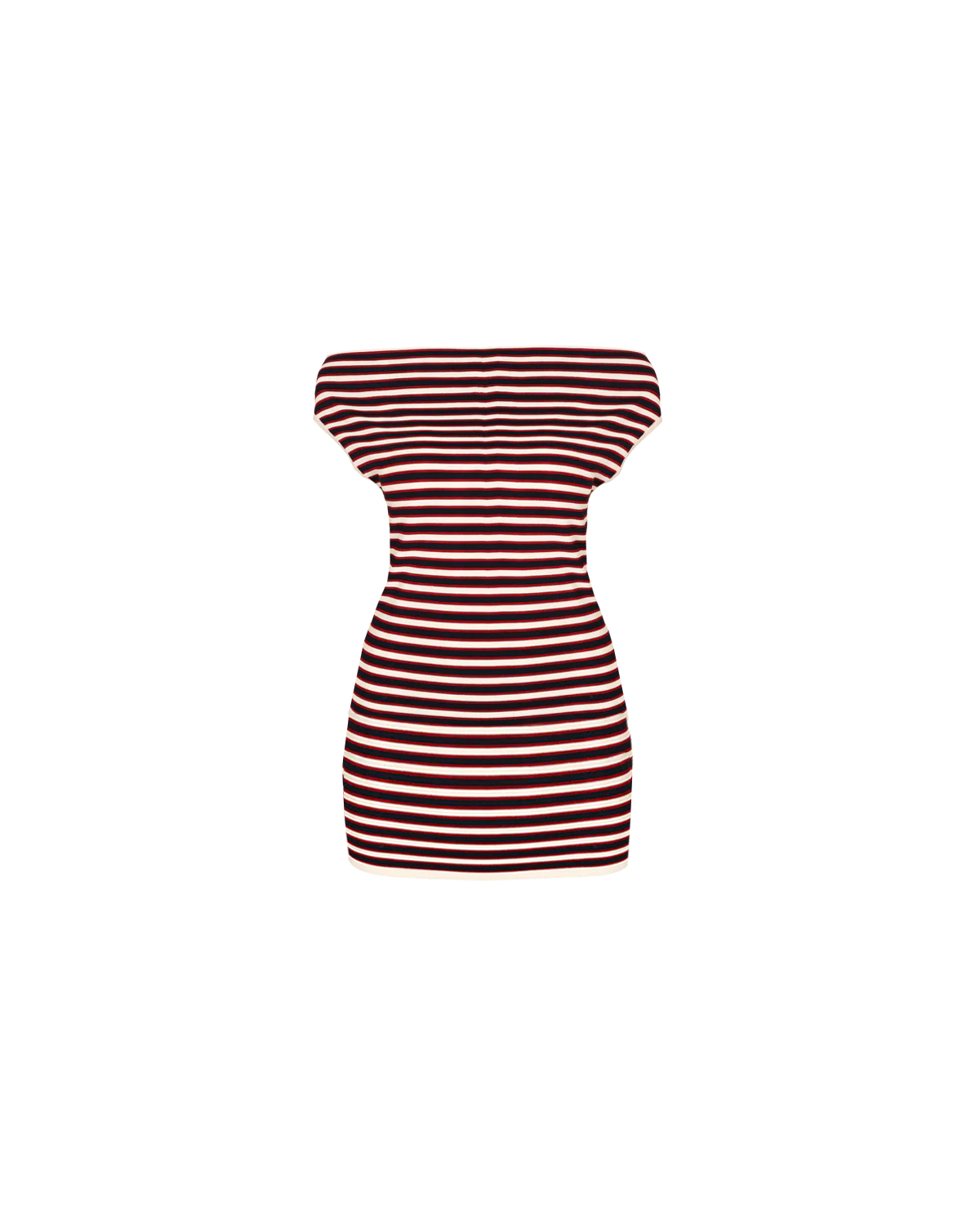 An update on our Emma Knit Top, now in mini dress version crafted in a mid-weight riviera striped knit. This dress is simple yet elevated and can be worn as a dress or layered over pants.