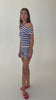 Off-shoulder knitted top crafted in a mid-weight butter merlot striped knit. This top is simple yet elegant and can be worn on or off the shoulder. Make it a matching set with our Marla Short.
