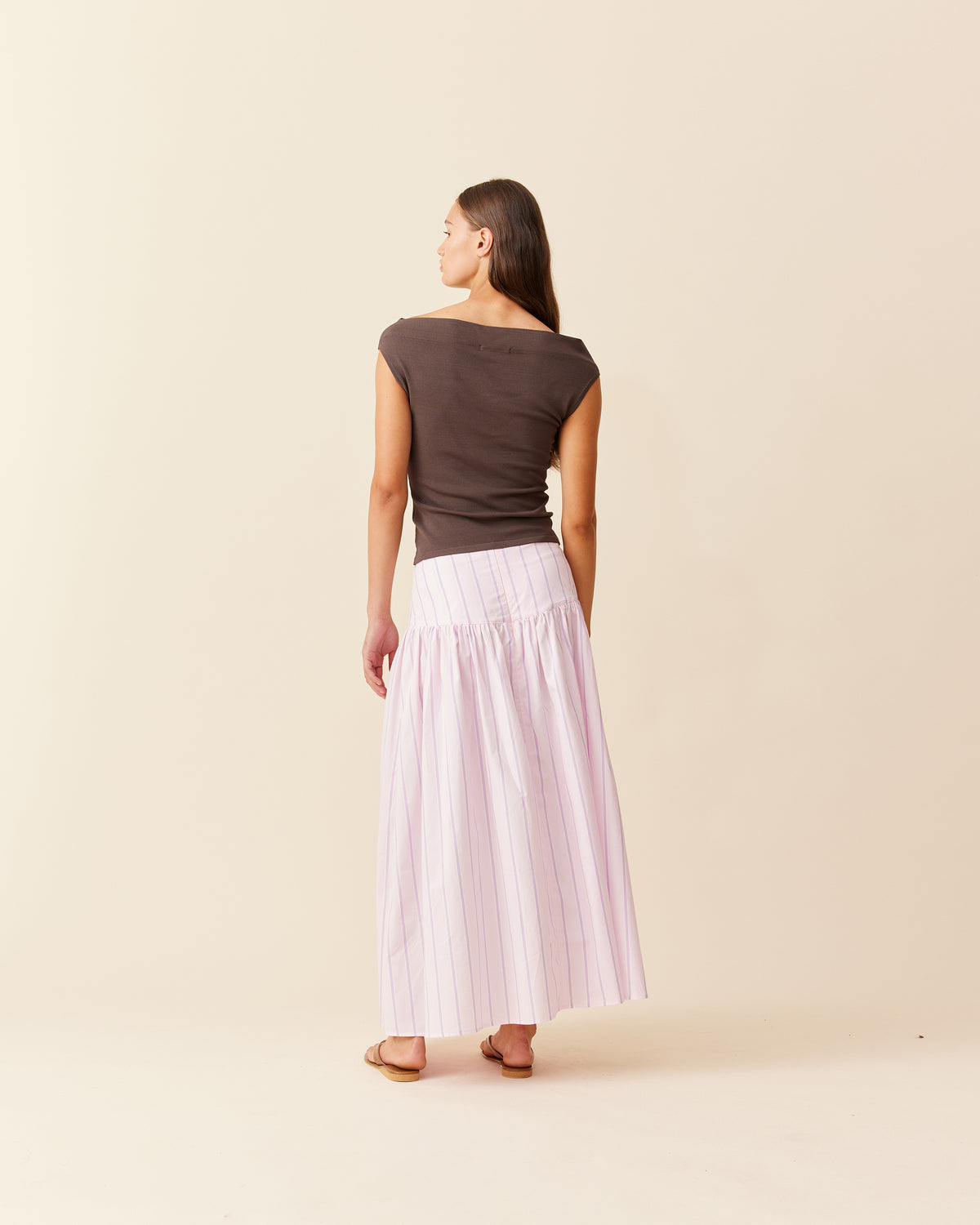 Off-shoulder knitted top crafted in a mid-weight knit. This top is simple yet elegant and can be worn on or off the shoulder.