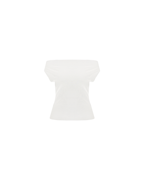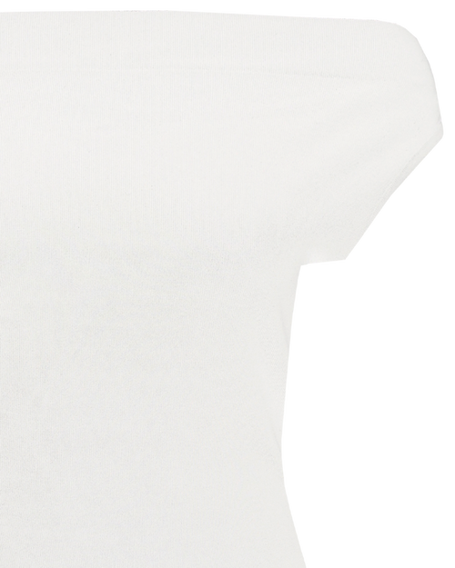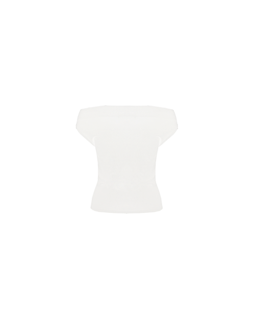 Off-shoulder knitted top crafted in a mid-weight knit. This top is simple yet elegant and can be worn on or off the shoulder.
