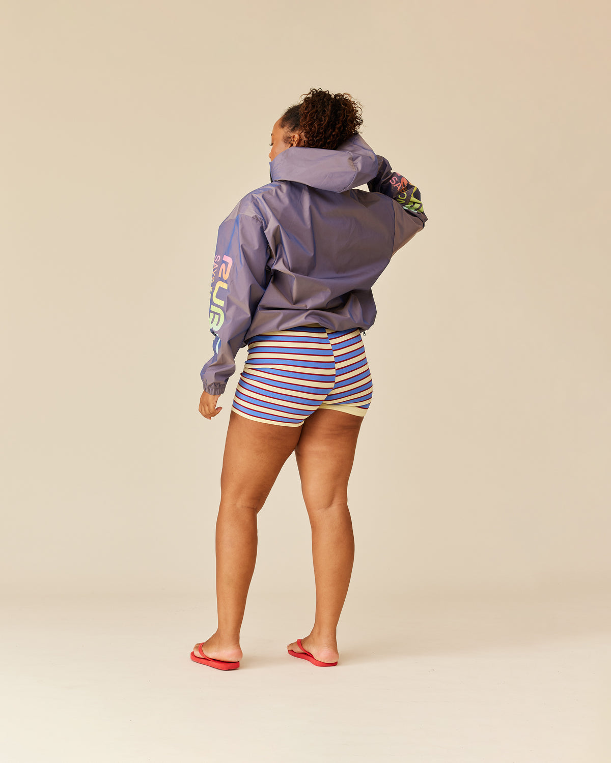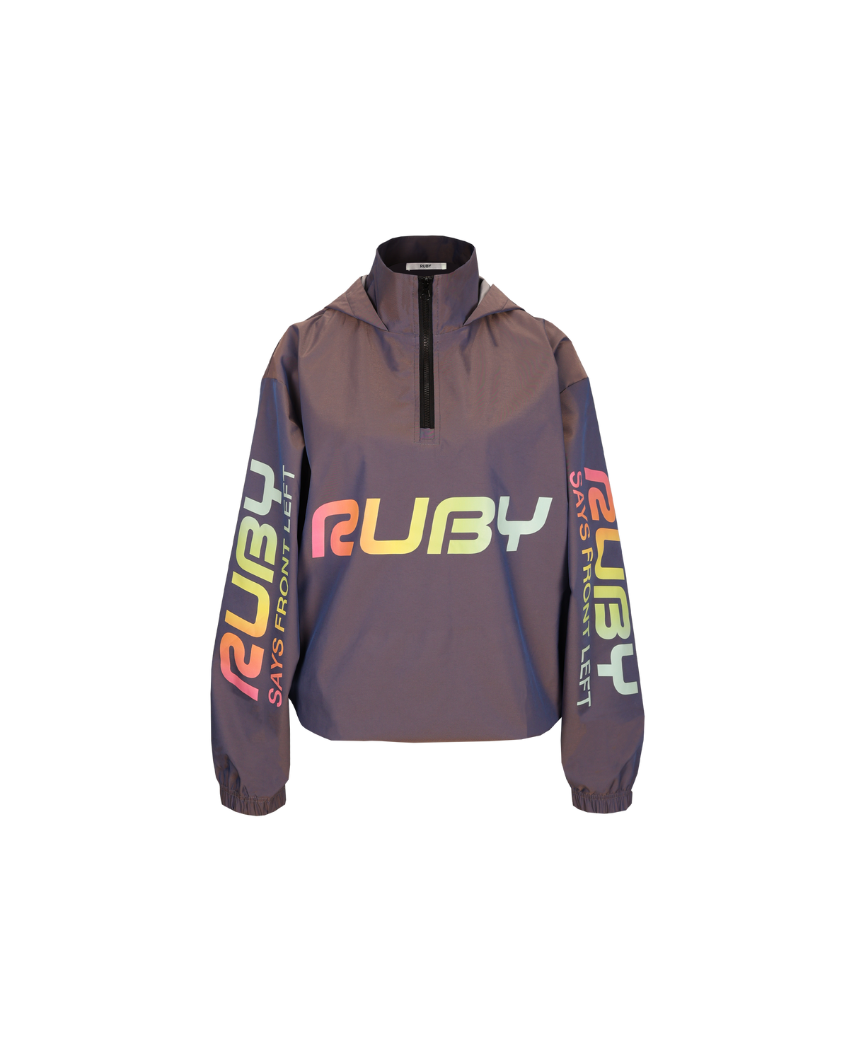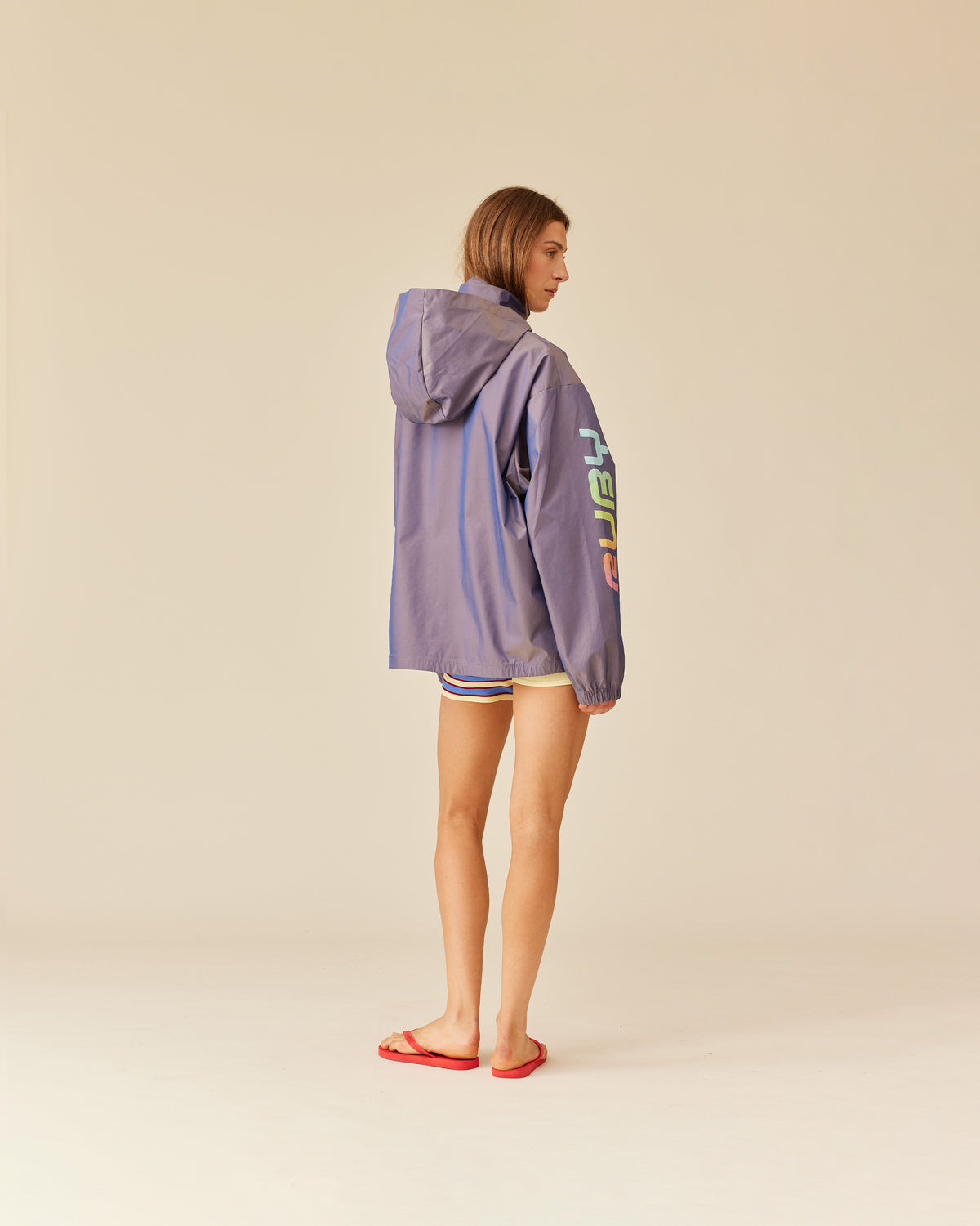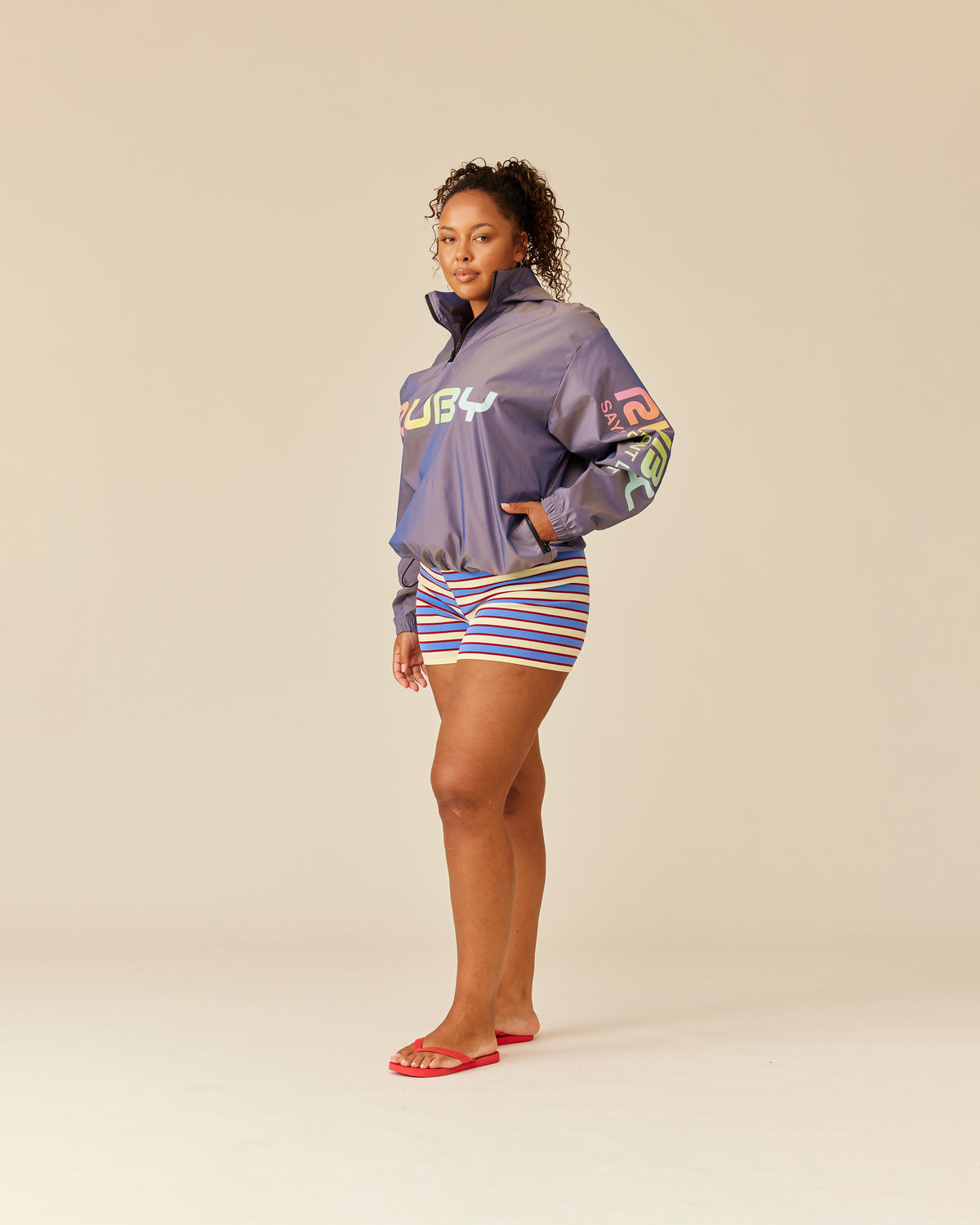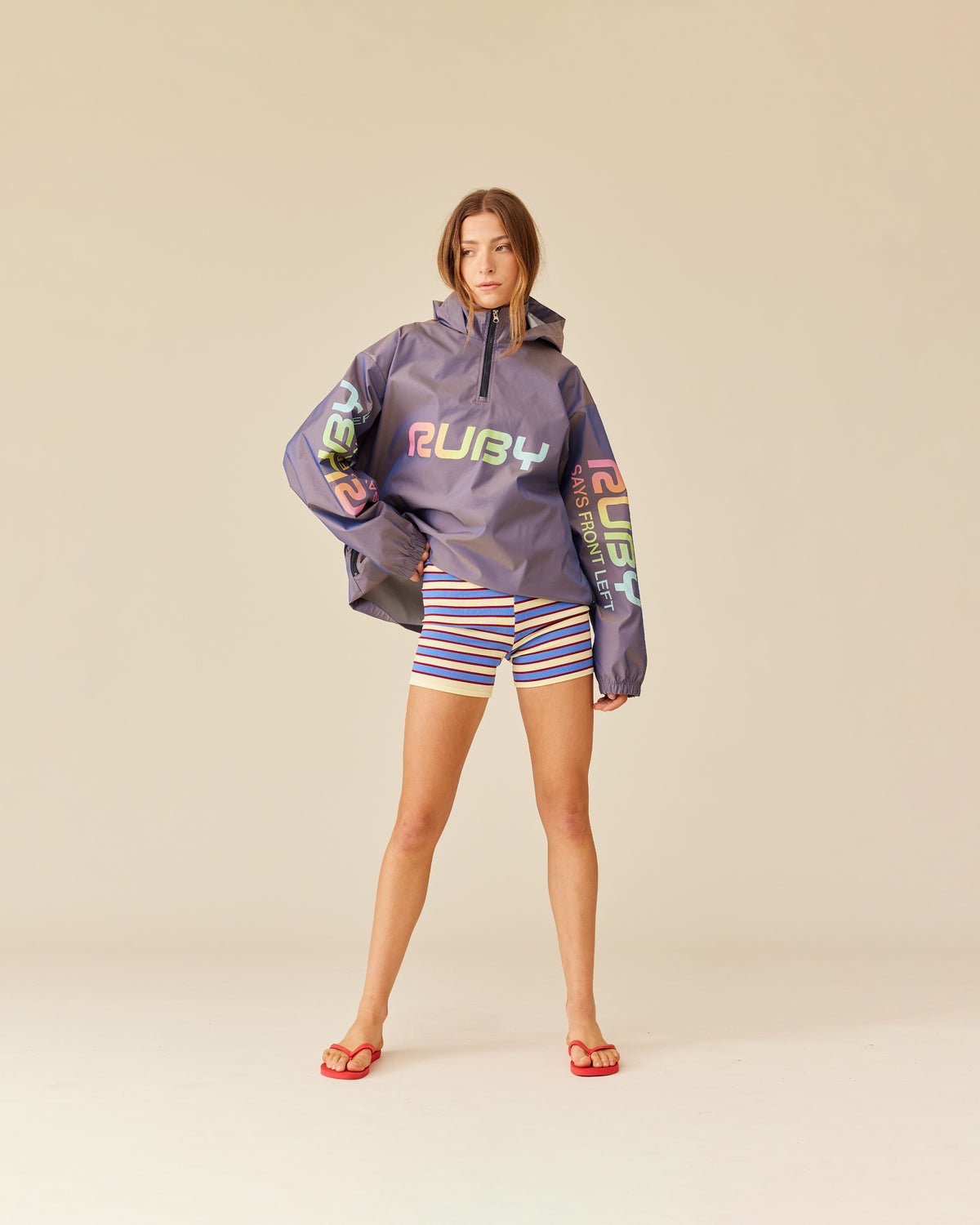 RUBY Says Front Left ~ stand out in the crowd with the ultimate festival parka, designed in a showerproof iridescent fabric. With secure zip pockets, drawstring hem and a hood, this parka can take you from a weekend walk to front of stage. Make it a set with our matching Front Left Short.