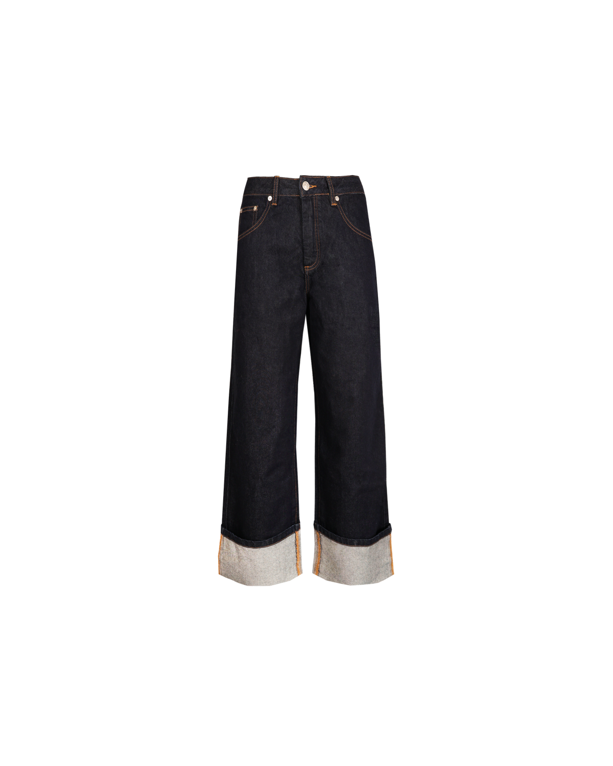 Straight leg jean designed in our unwashed denim, with a double yoke detail at the back. Sits mid-waisted and features an adjustable oversized cuff.