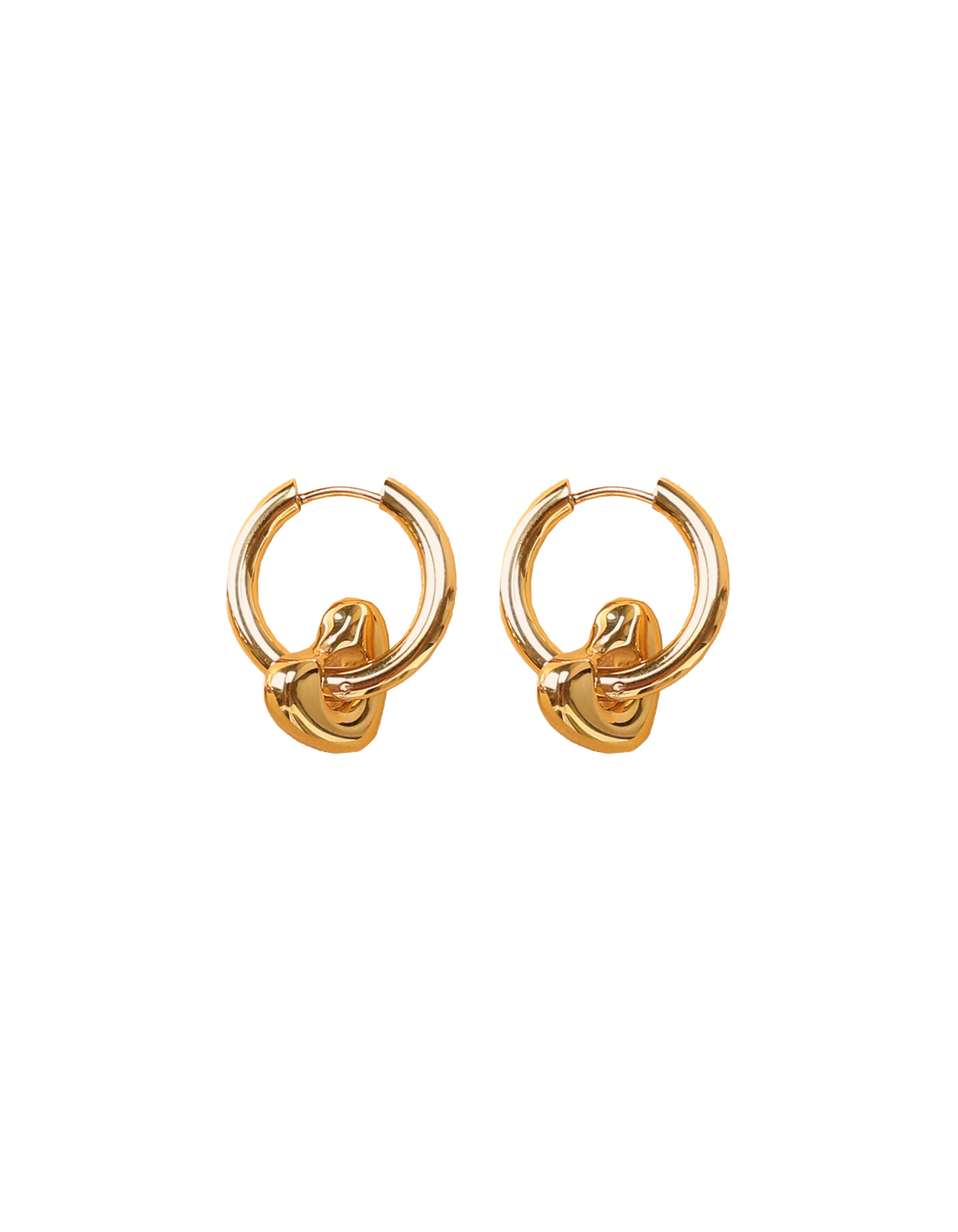 Gold plated stainless steel hoop earrings with a feature heart charm. The perfect everyday earrings to complete your look.