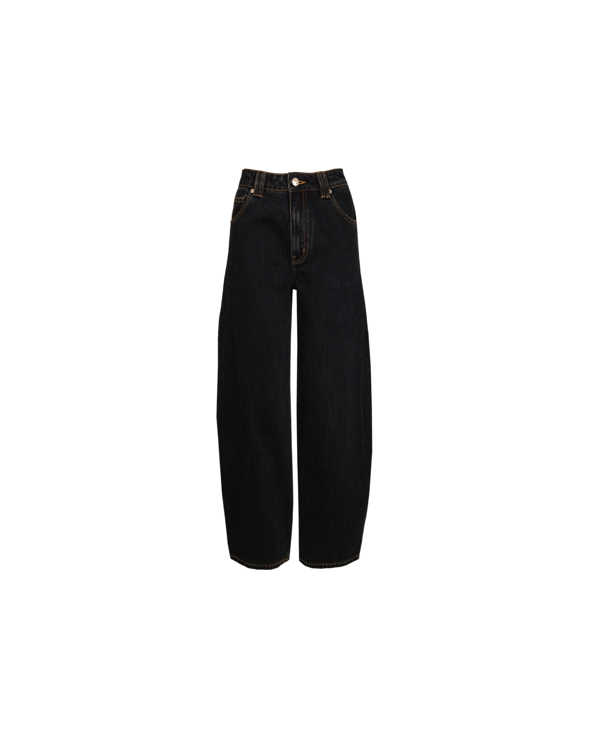 Barrel-leg jean designed in our signature ink wash denim. Sits mid-waisted with classic 5 pocket and waistband detailing. A pared back version of our Buzz Jean.