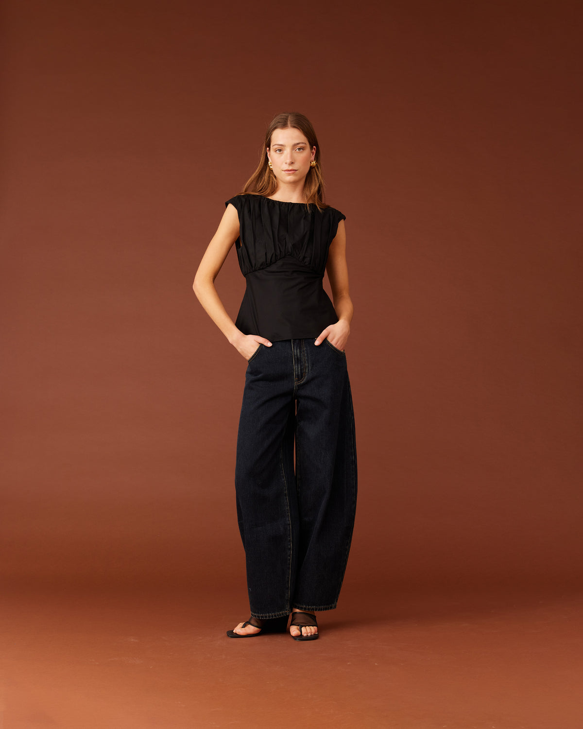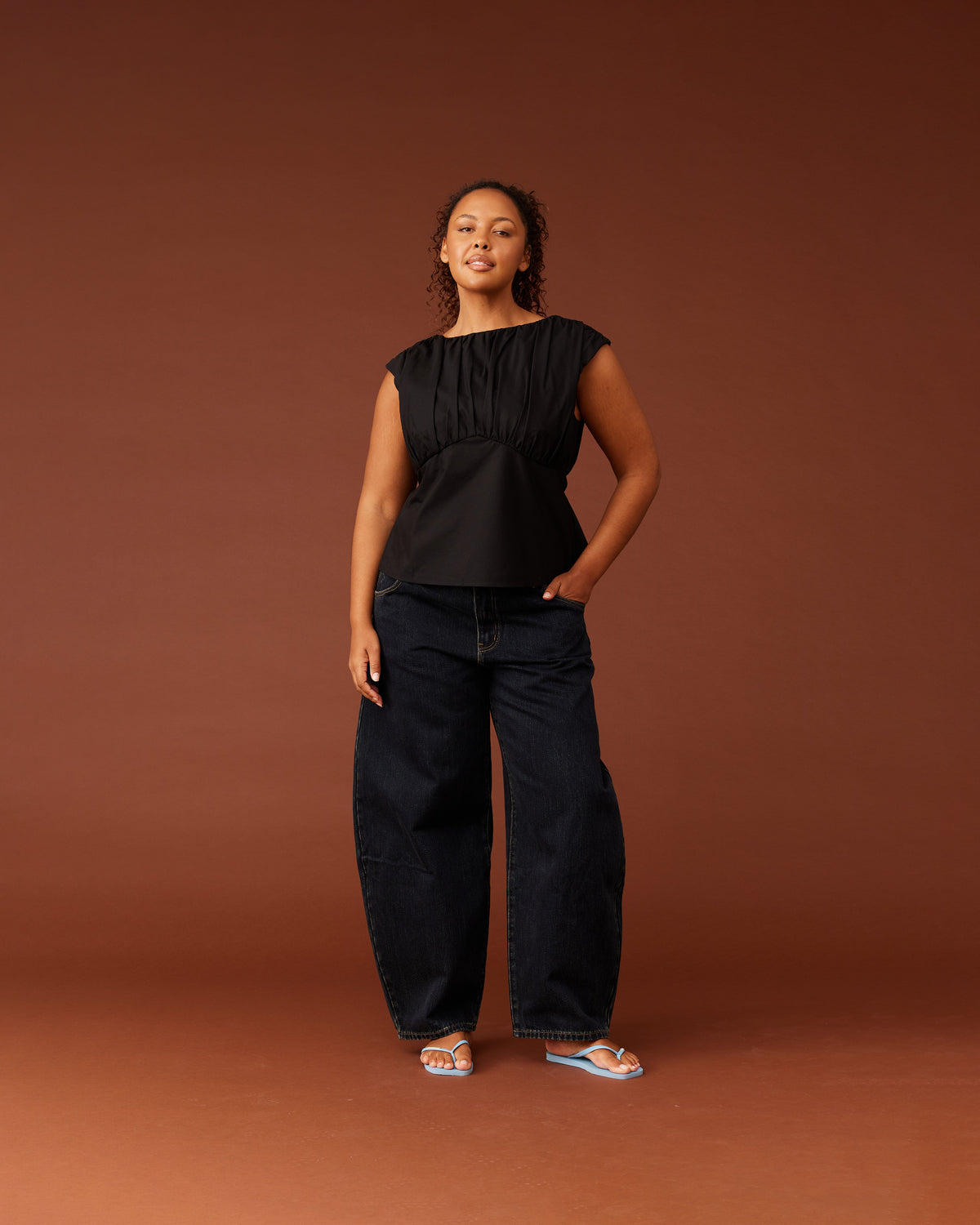 An update on our Raquel Top, crafted in a pink petrol tartan. Features a high boat neckline and a scooped back, with ruched detailing at the bust. The tailored fit is designed to sit close to your body without feeling too tight.