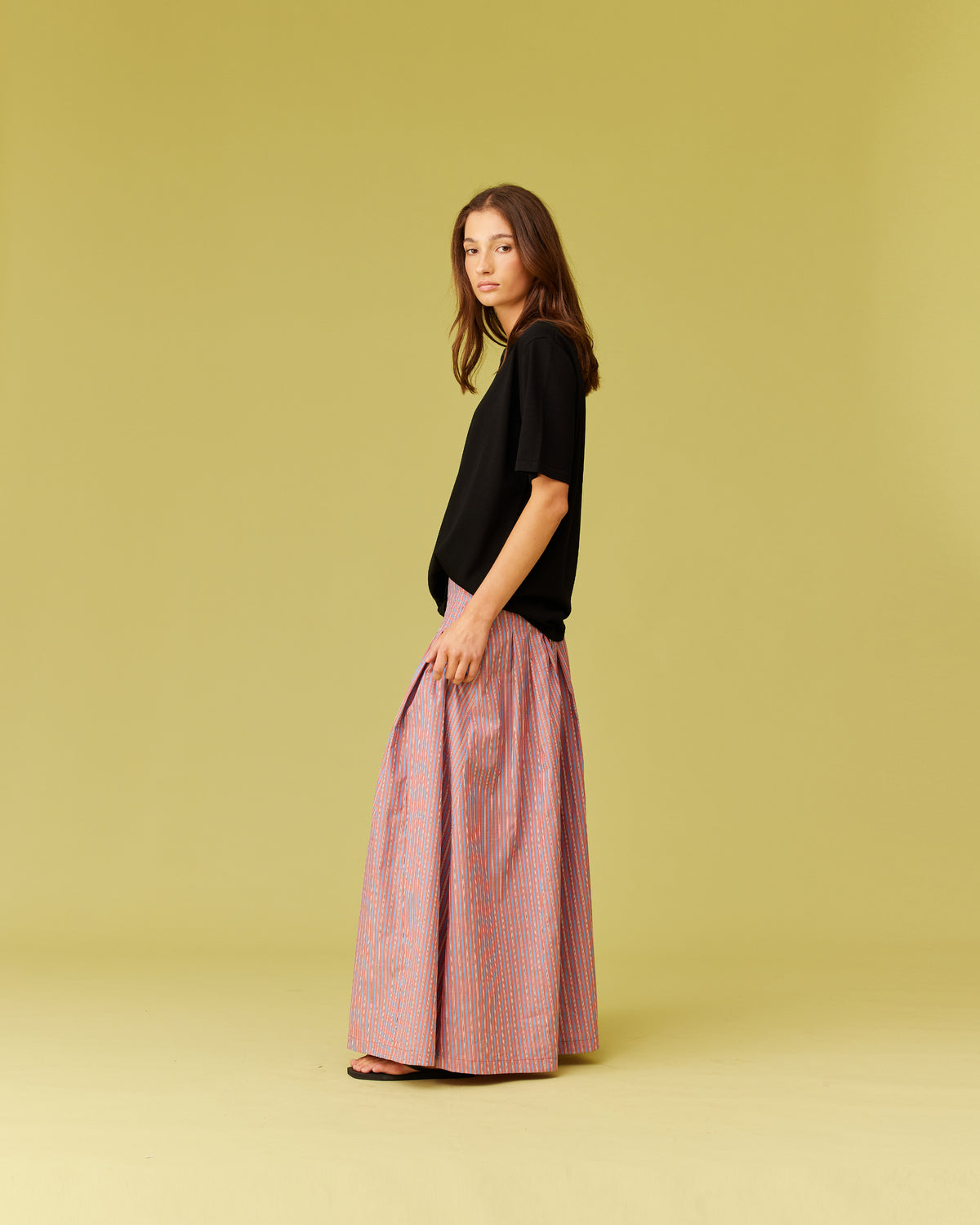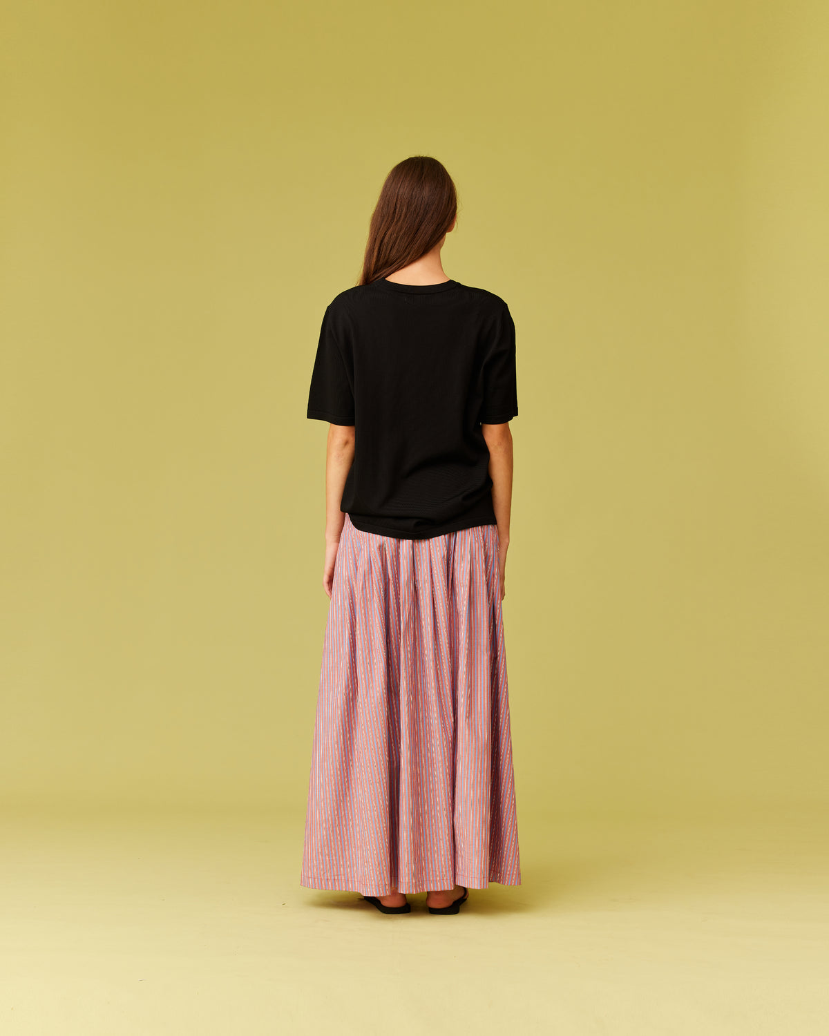 A staple in everyone's wardrobe: the classic black t-shirt. Made in a knitted recycled viscose, this shirt is the perfect elevated basic.