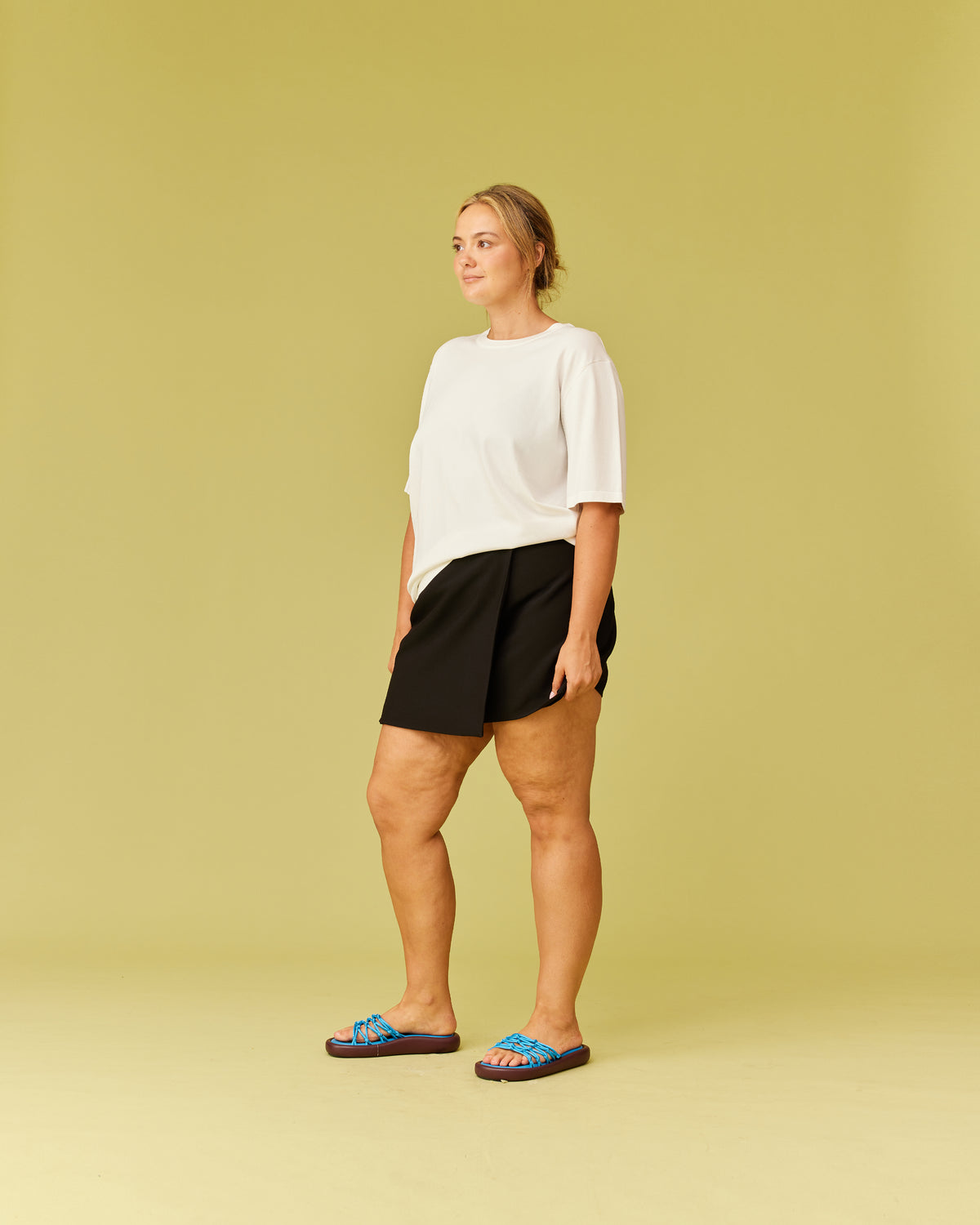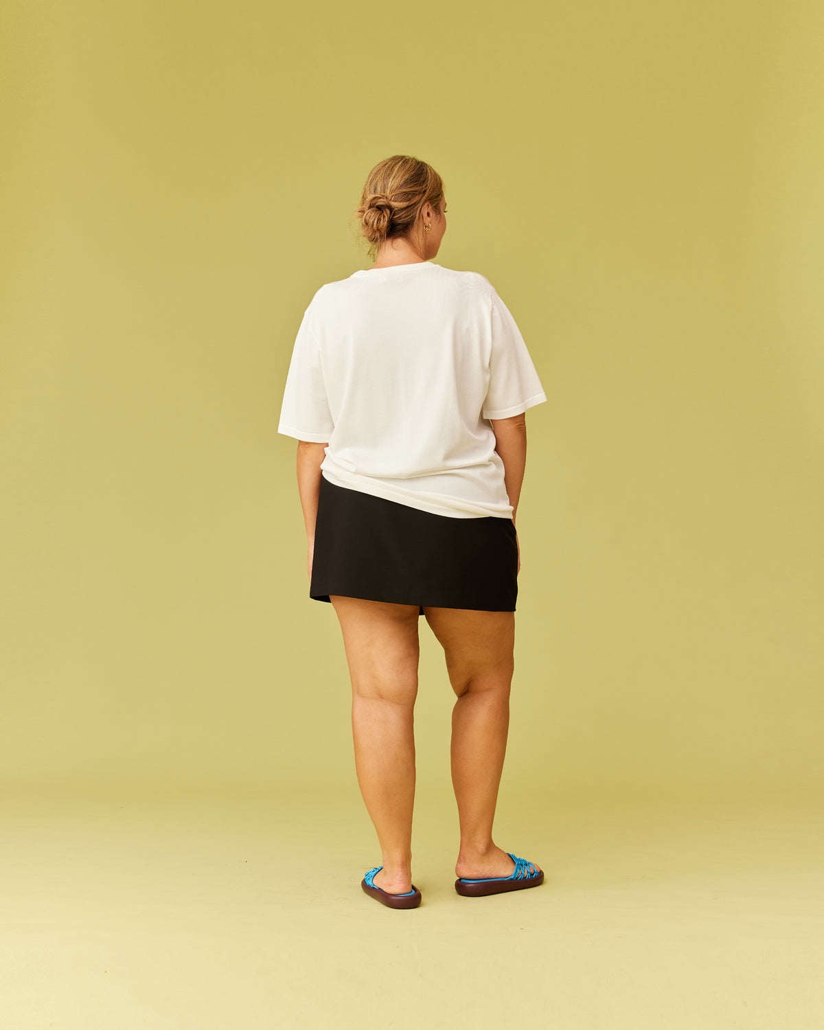 A staple in everyone's wardrobe: the classic white t-shirt. Made in a knitted recycled viscose, this shirt is the perfect elevated basic.