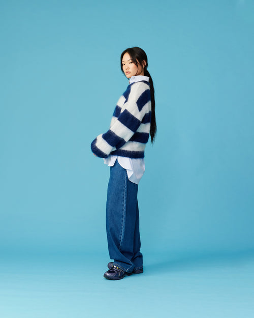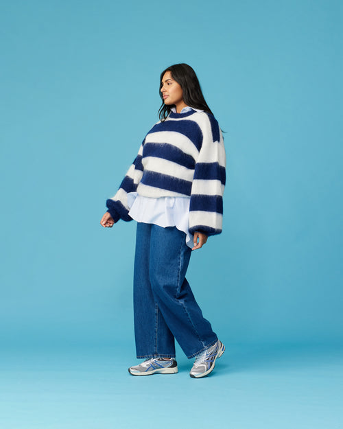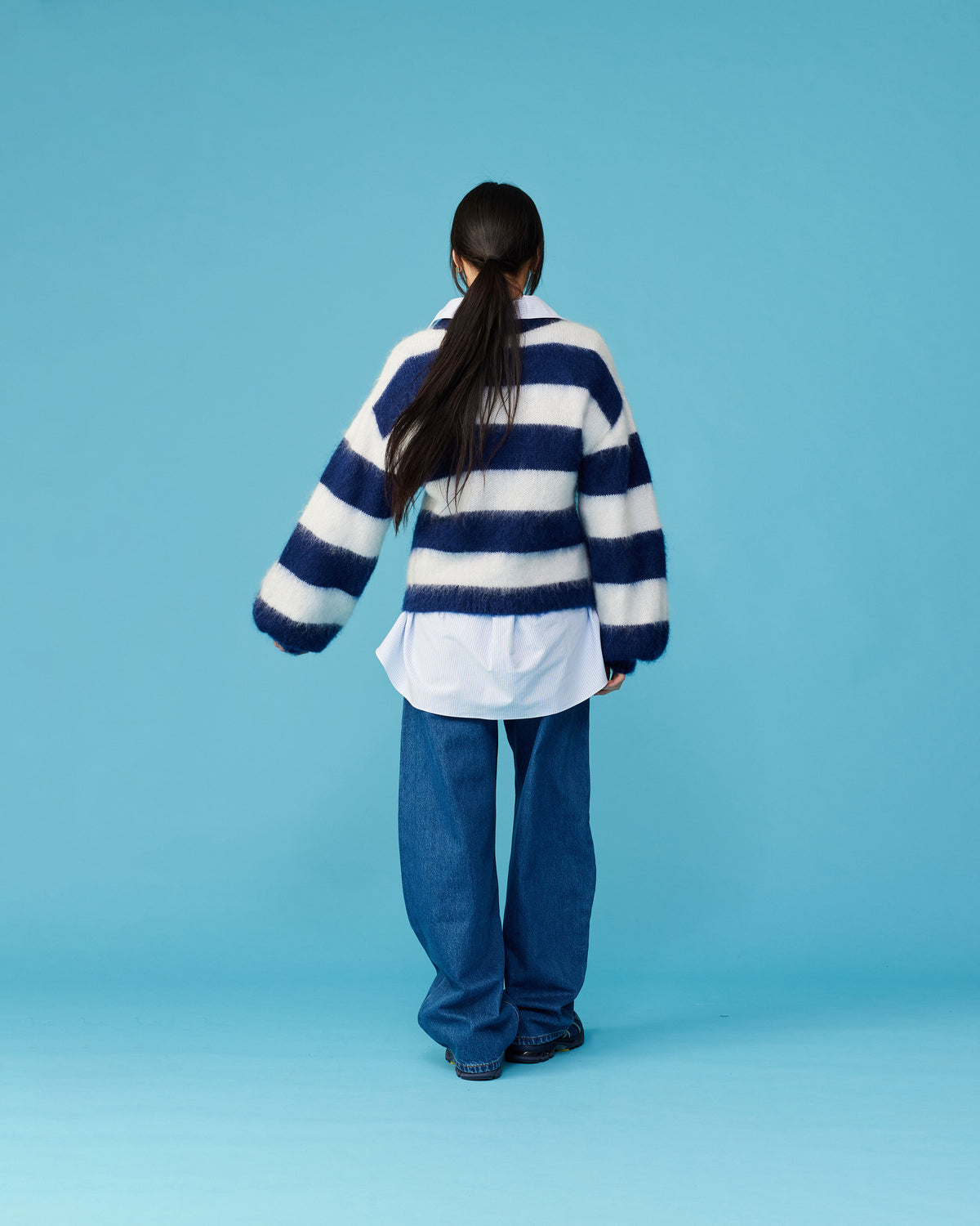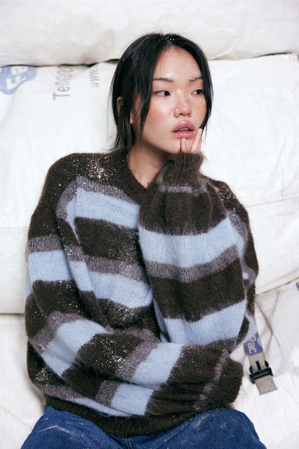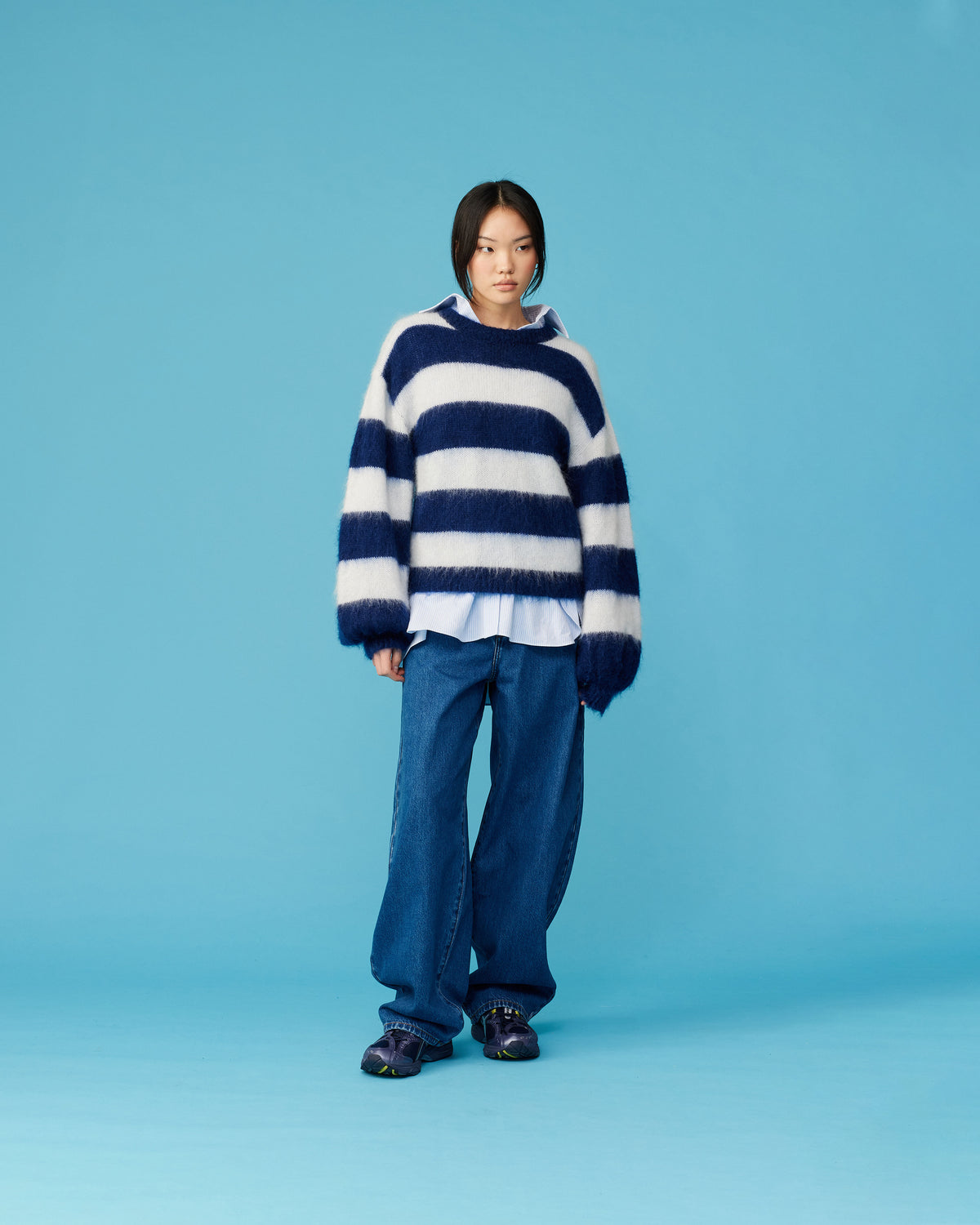 Balloon sleeve sweater designed in a cosy mohair wool blend. This sweater has a brushed texture with a super soft hand-feel.