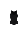 Corset style tank top designed in a stretch knit fabric with panels through the body and a curved hem and round neckline. A contemporary take on a classic style corset that is considerably more comfortable than the original.