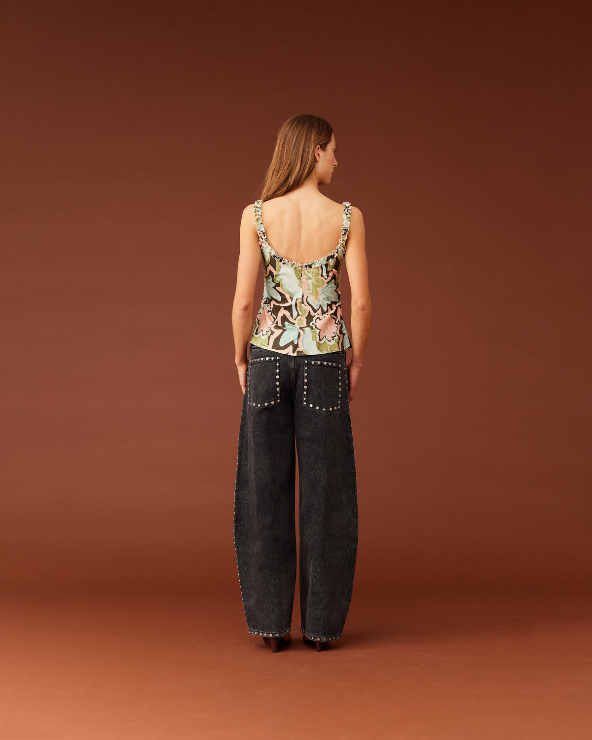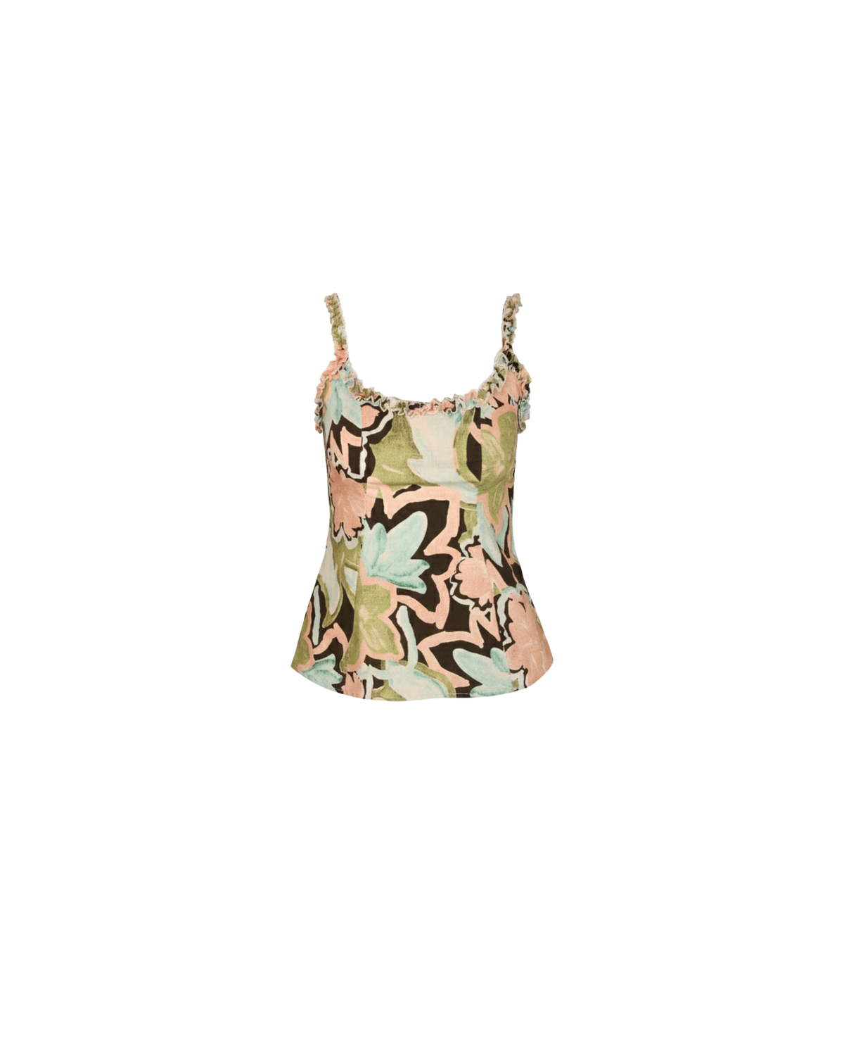 An elevated tank top with ruffle detailing, designed in our dreamy frosted floral. Pair with your favourite summer basics.