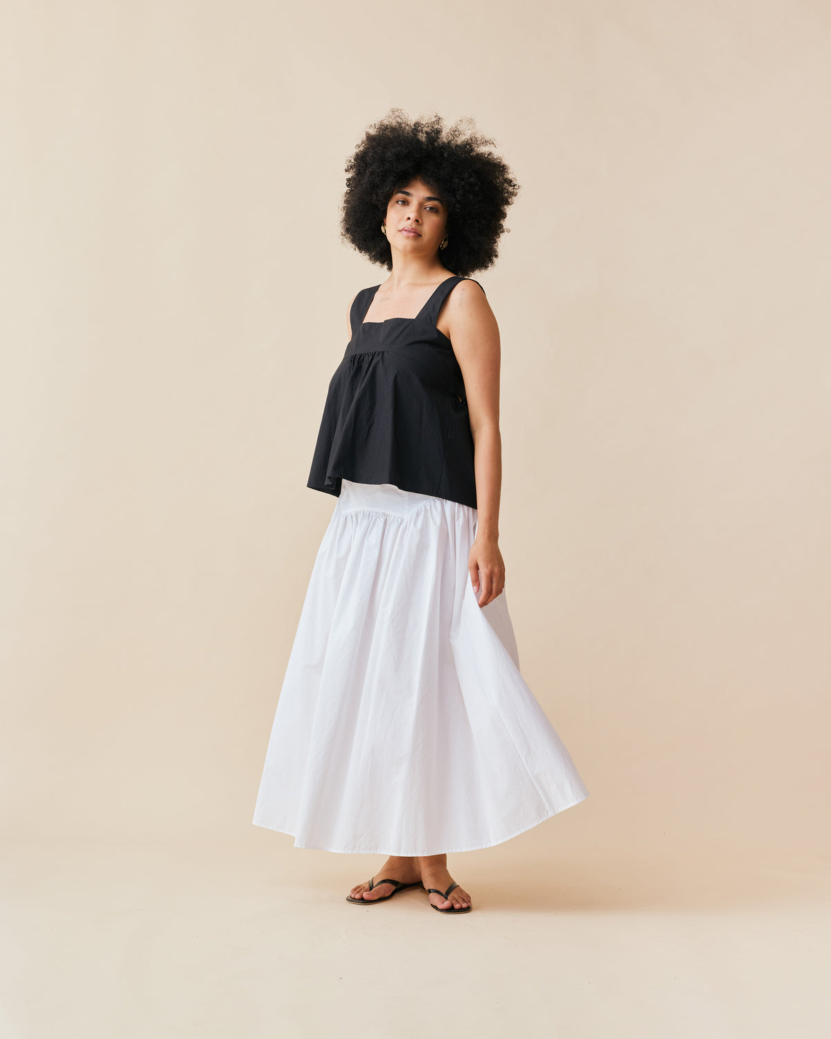 Cotton sleeveless top with a square band at the bust. Features a bow tie detail at the back and a cut-out, the cutest summer top worn with your favourite denim.