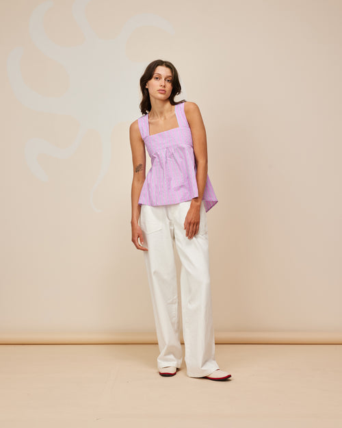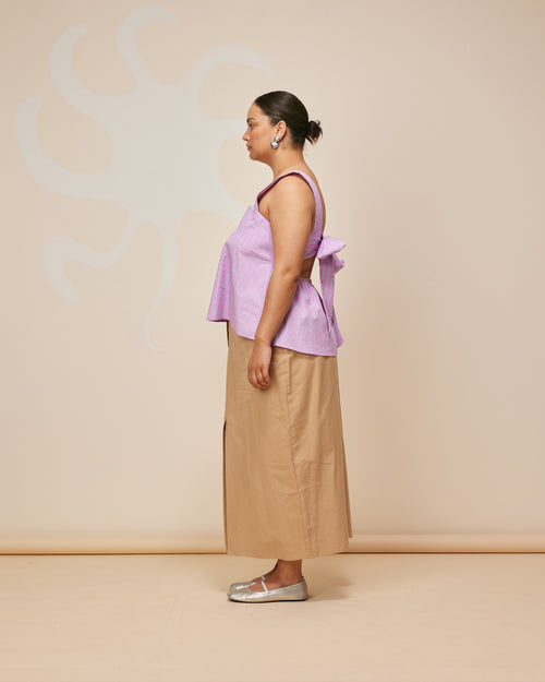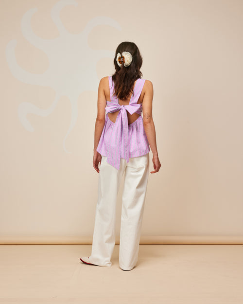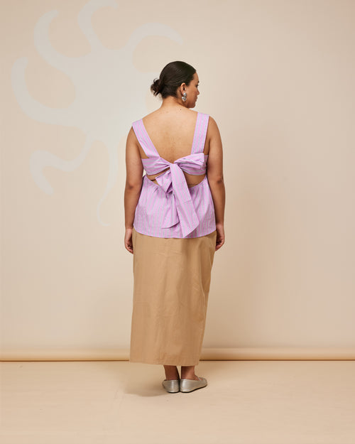 Cotton sleeveless top with a square band at the bust. Features a bow tie detail at the back and a cut out, the cutest summer top worn with your favourite denim.