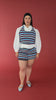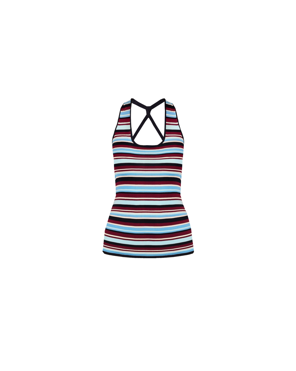 Halter tank top crafted in a burgundy blue striped mid-weight knit. A simple staple that will add some colour and fun to your wardrobe. Make it a set by pairing this tank with the Marla Shorts