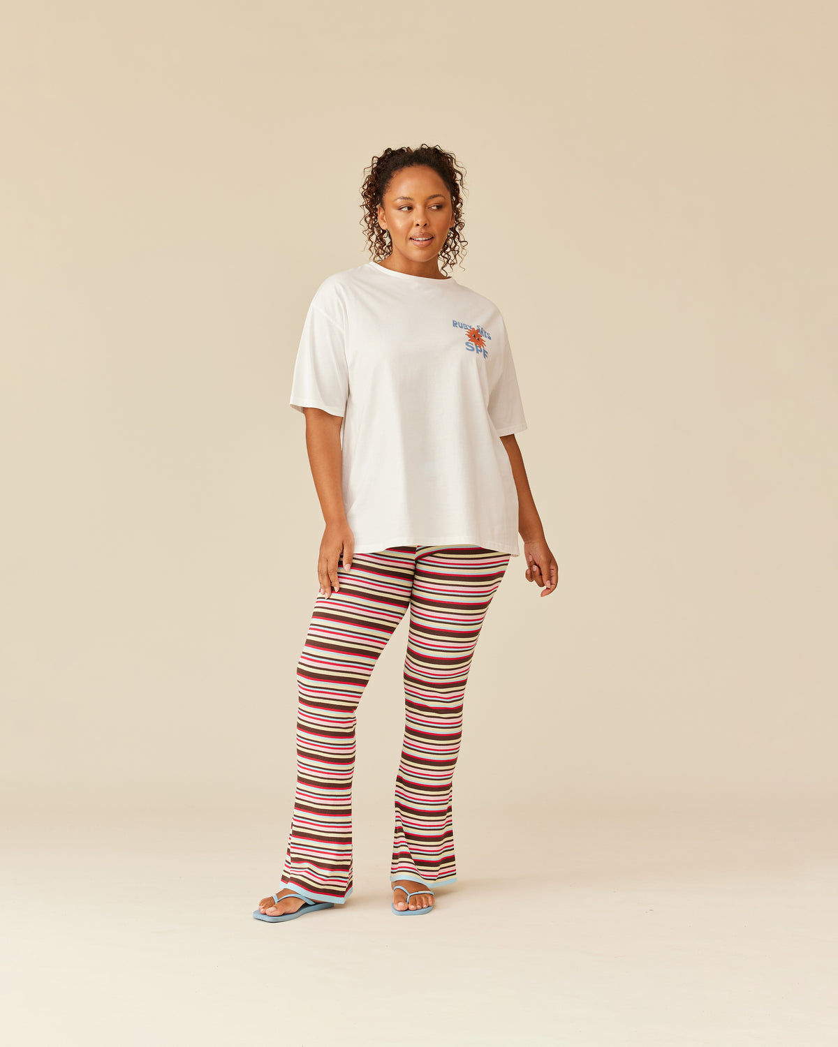 An update on our Marla Shorts ~ Marla pants, designed in a candy striped viscose knit. Make it a set with our Emma Knit Top.