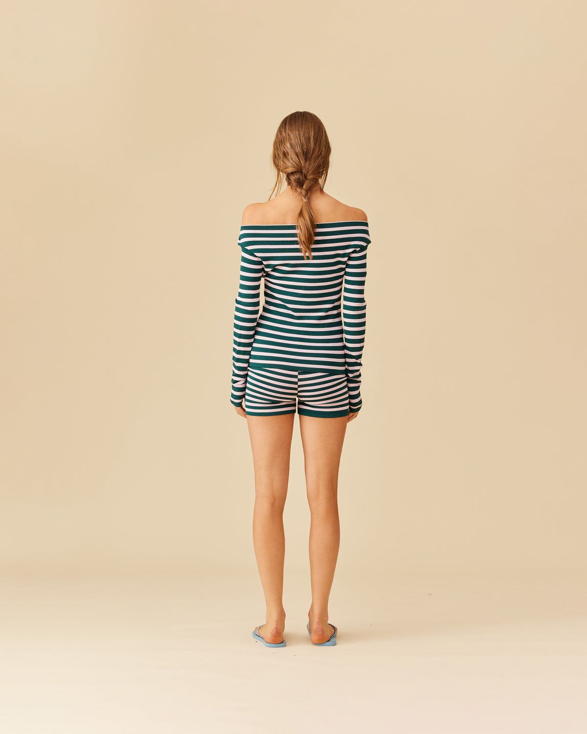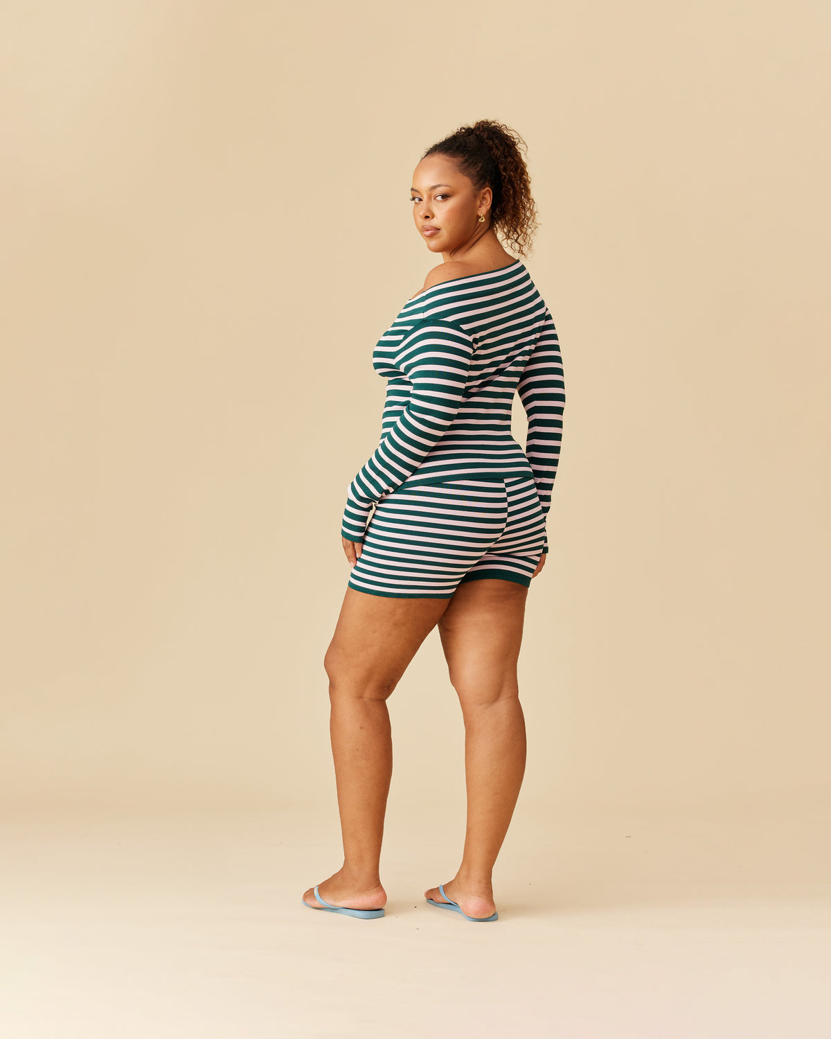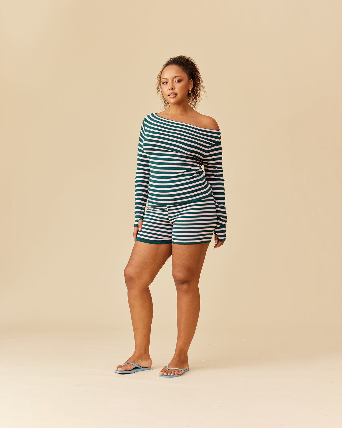 Knitted booty shorts, designed in a pink forest striped viscose knit. These shorts pair with our Emma Knit Long Sleeve or look great with a big t-shirt and boots.