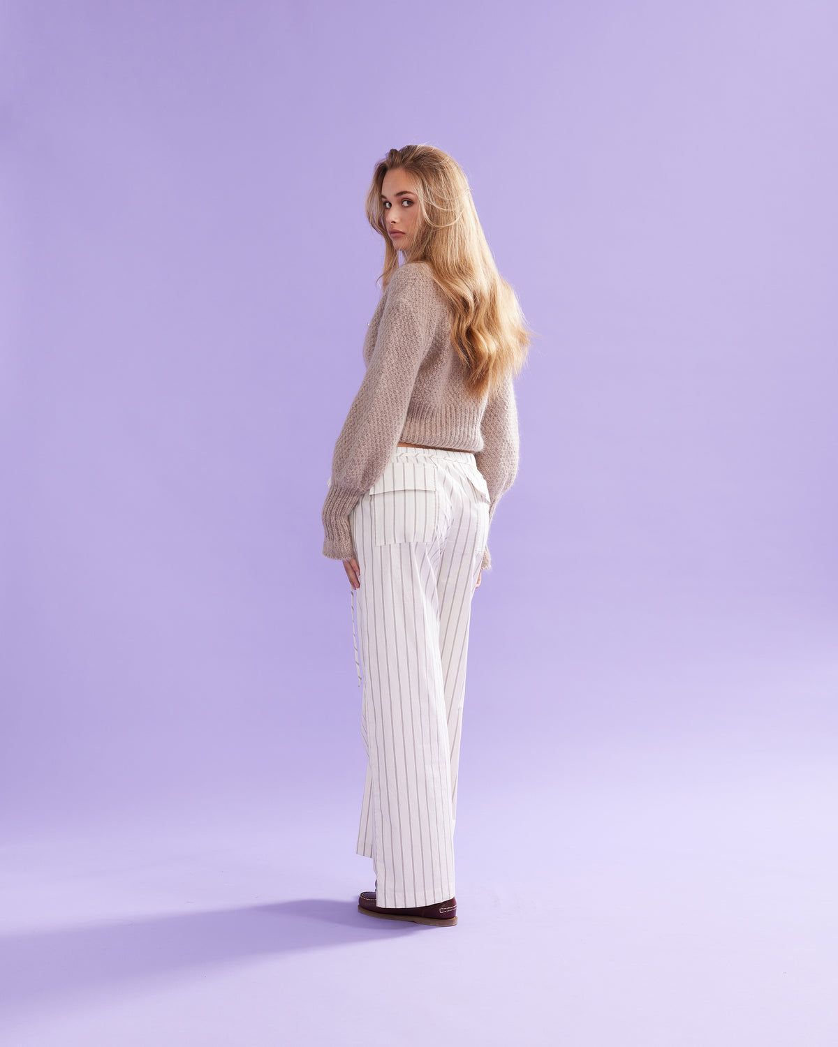 We currently do not offer custom sizing in knitwear or denim, as these styles are made offshore and require a higher quantity to be made, nor do we remake sold out styles in standard sizing. Please note that this is subject to fabric availability and this is not a made to measure service.