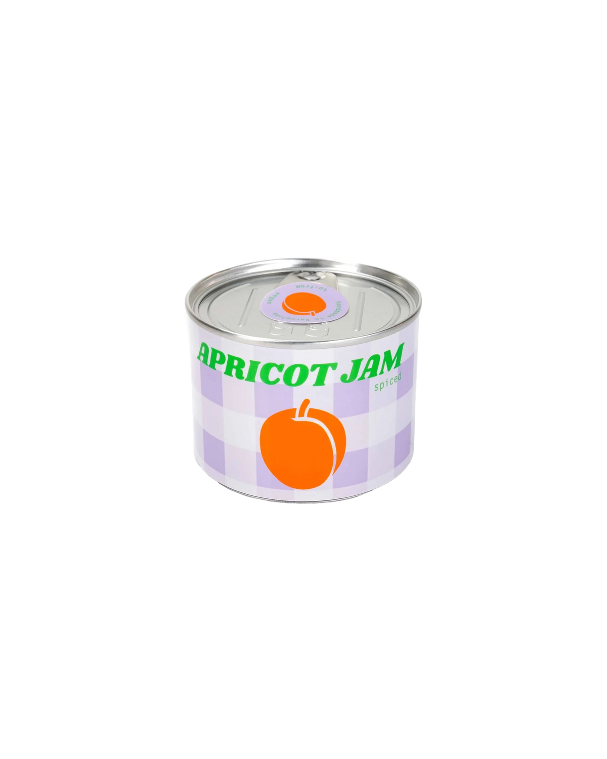 Natural soy wax candle with the warming scent of spiced apricot jam, made in a fun tin can design.