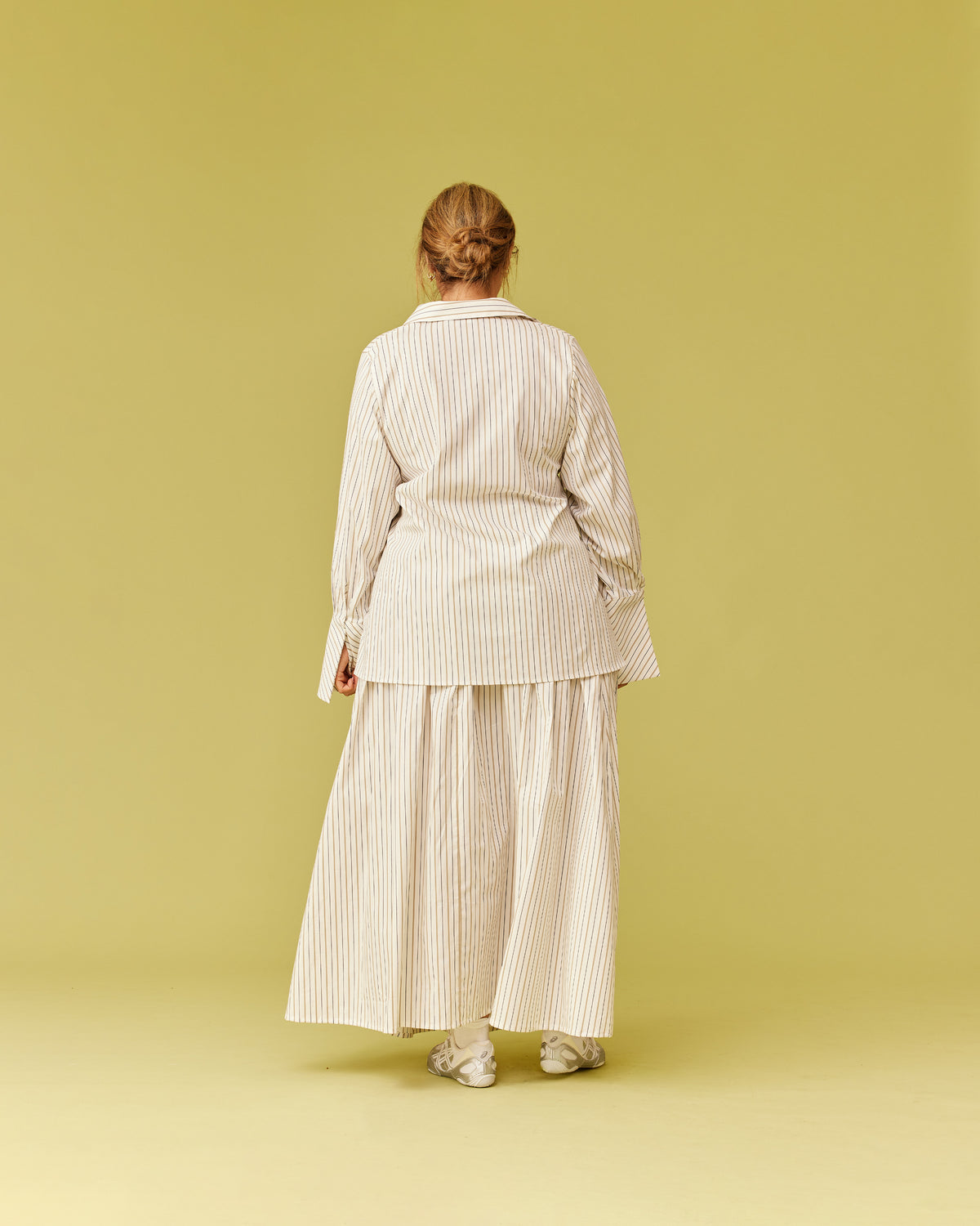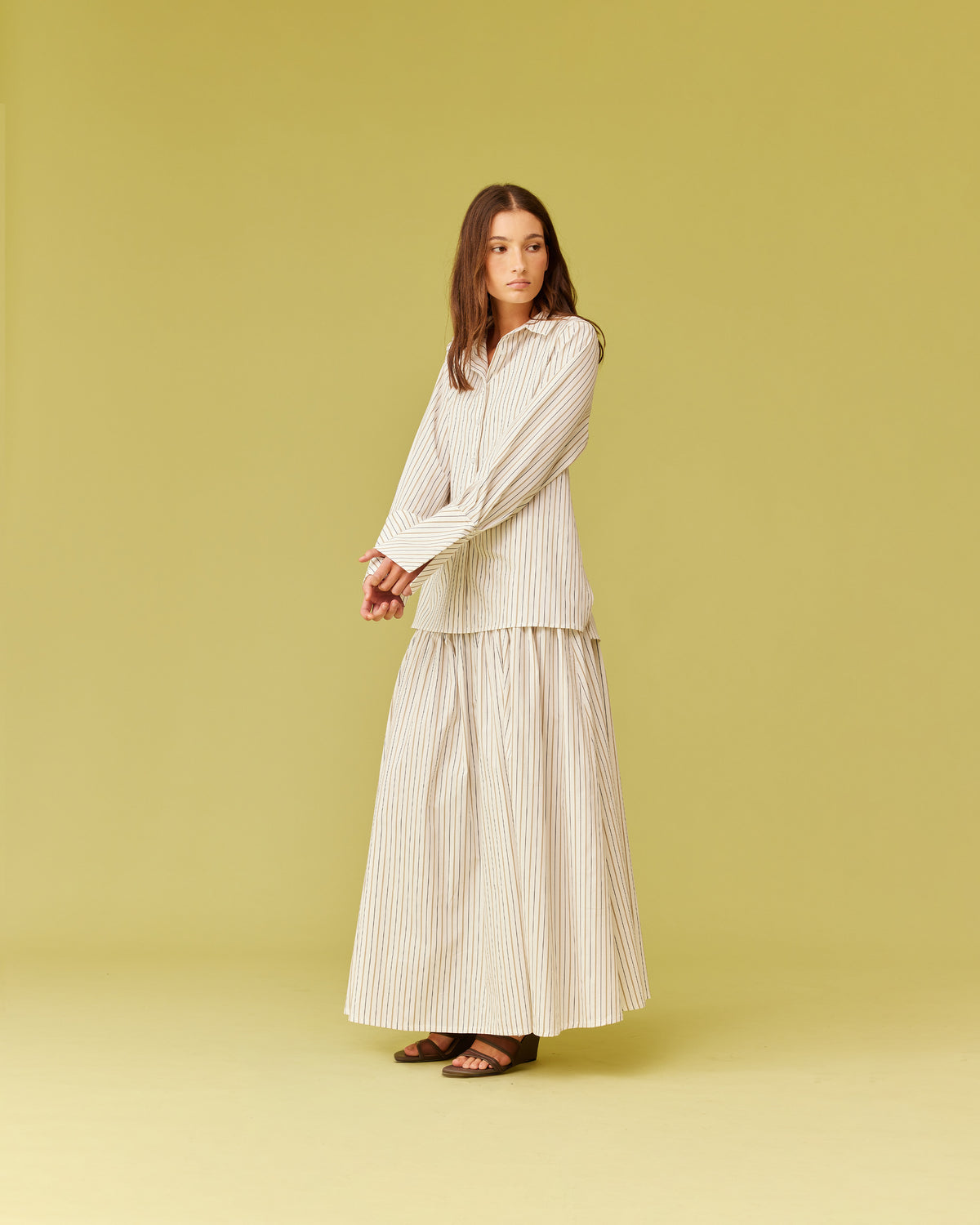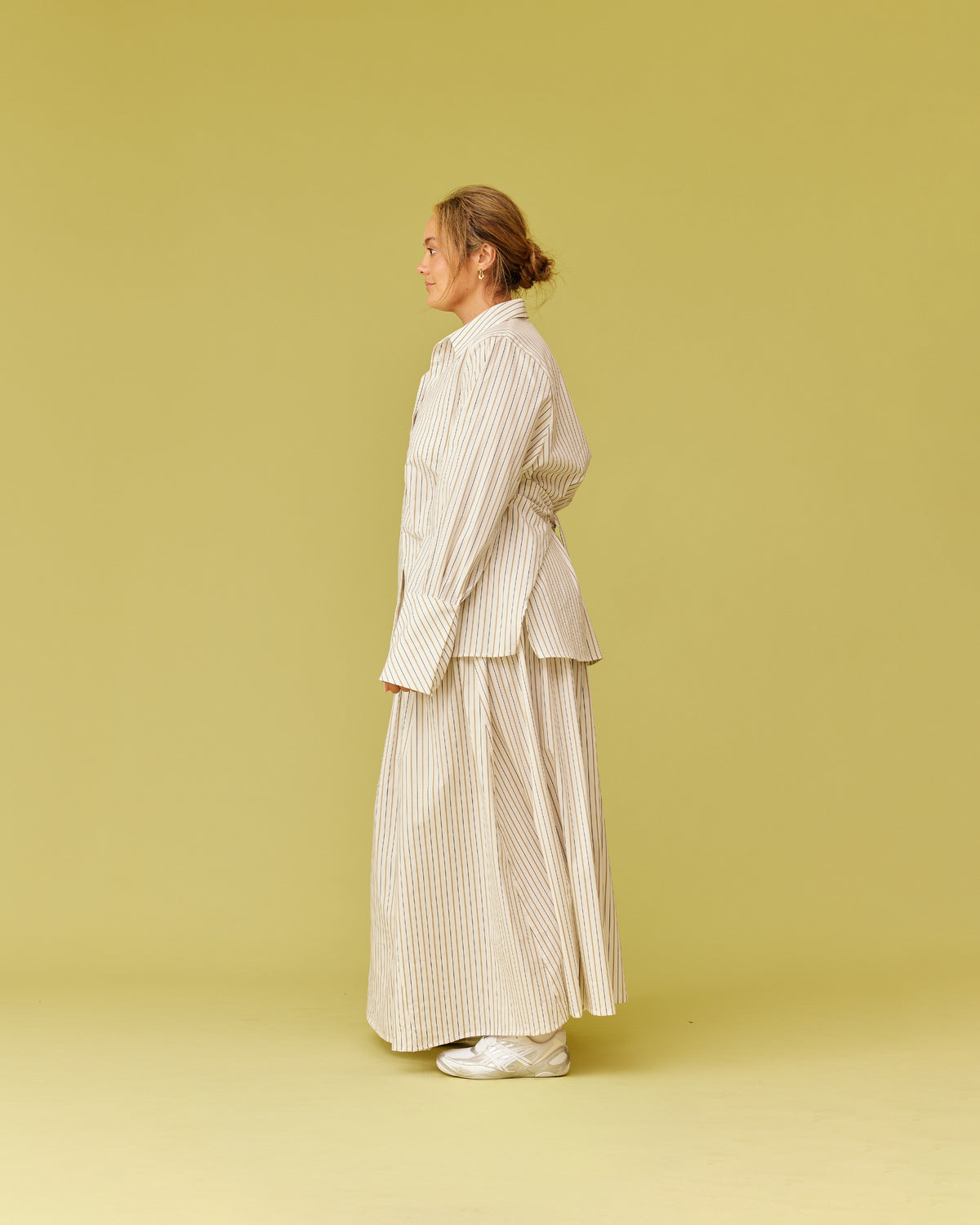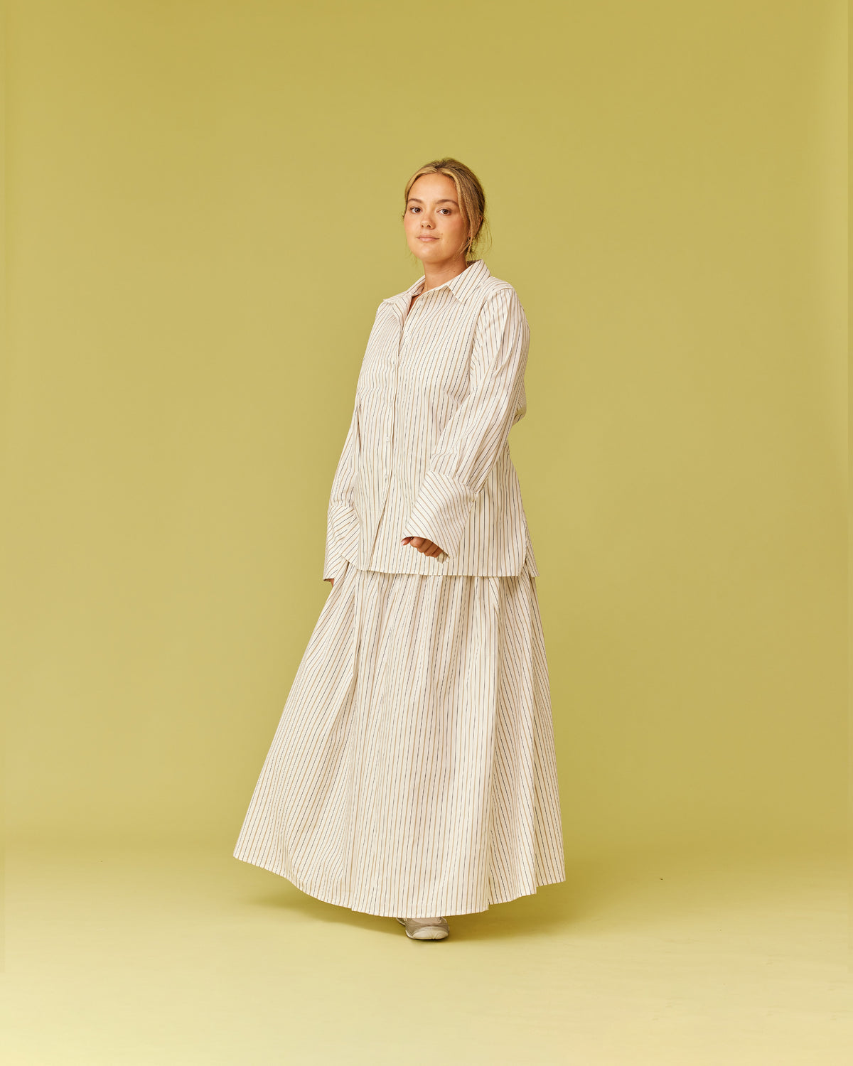 Long sleeve organic cotton shirt designed in our dune stripe. Featuring a side panel wrap design which can be tied in the front or the back for a cinched look. Make it a matching set with our Trulli Skirt.