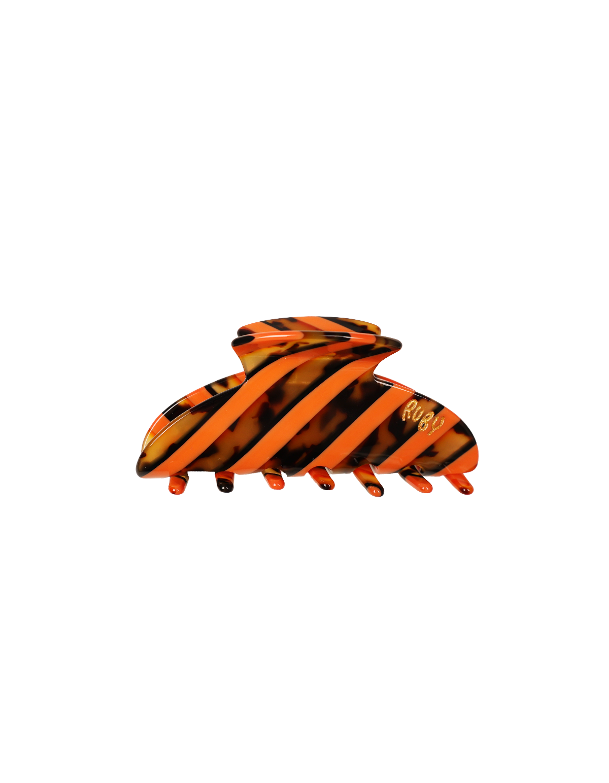Orange tortoise hair claw, this is a staple accessory for any occasion. Holds half a head of hair and is comfortable enough to wear from morning to night.