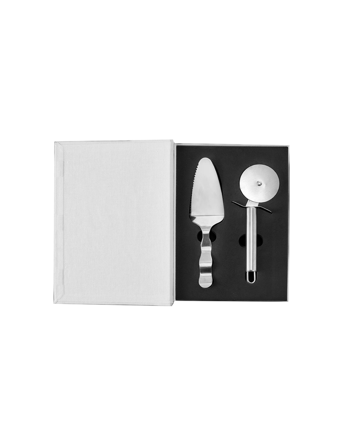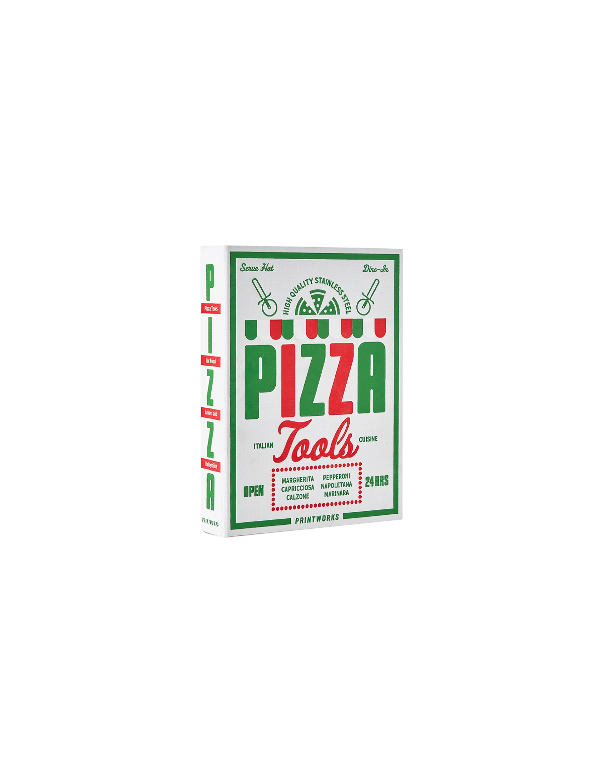 Set of steel pizza tools cleverly disguised in an elegant book-like box, it's the perfect fusion of aesthetics and functionality. Contains all the essential tools for pizza night.