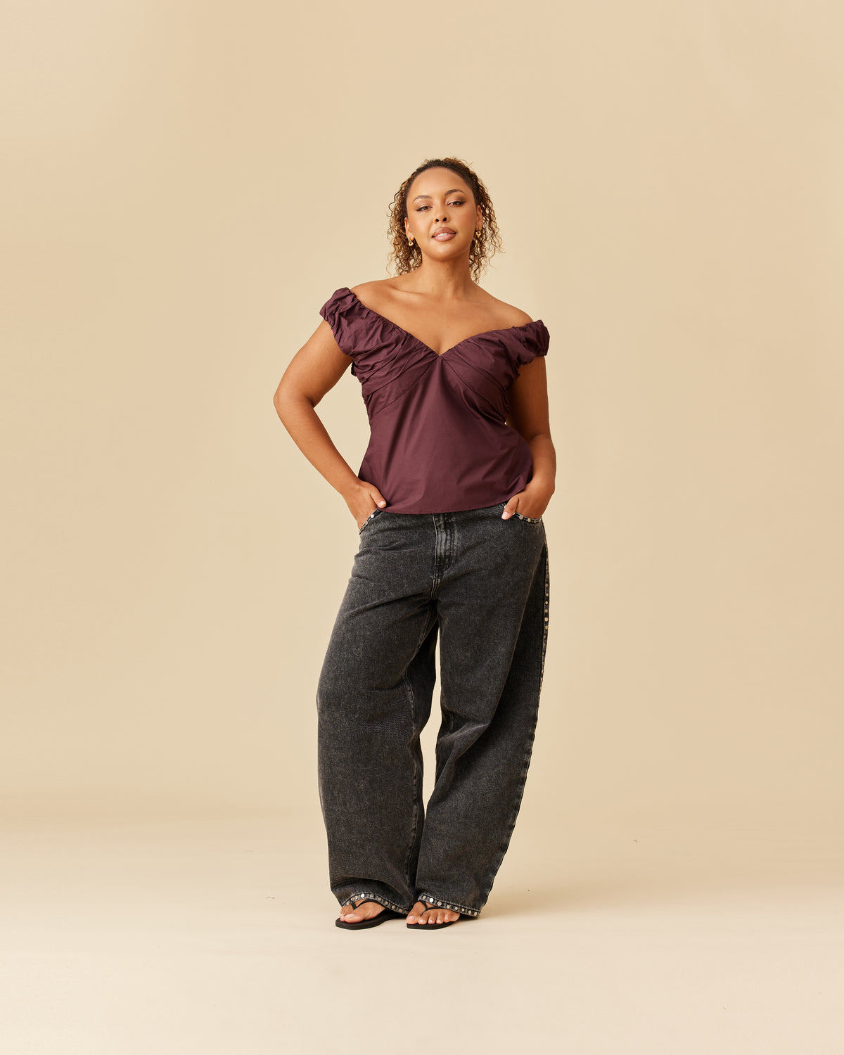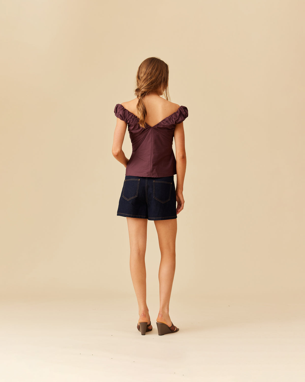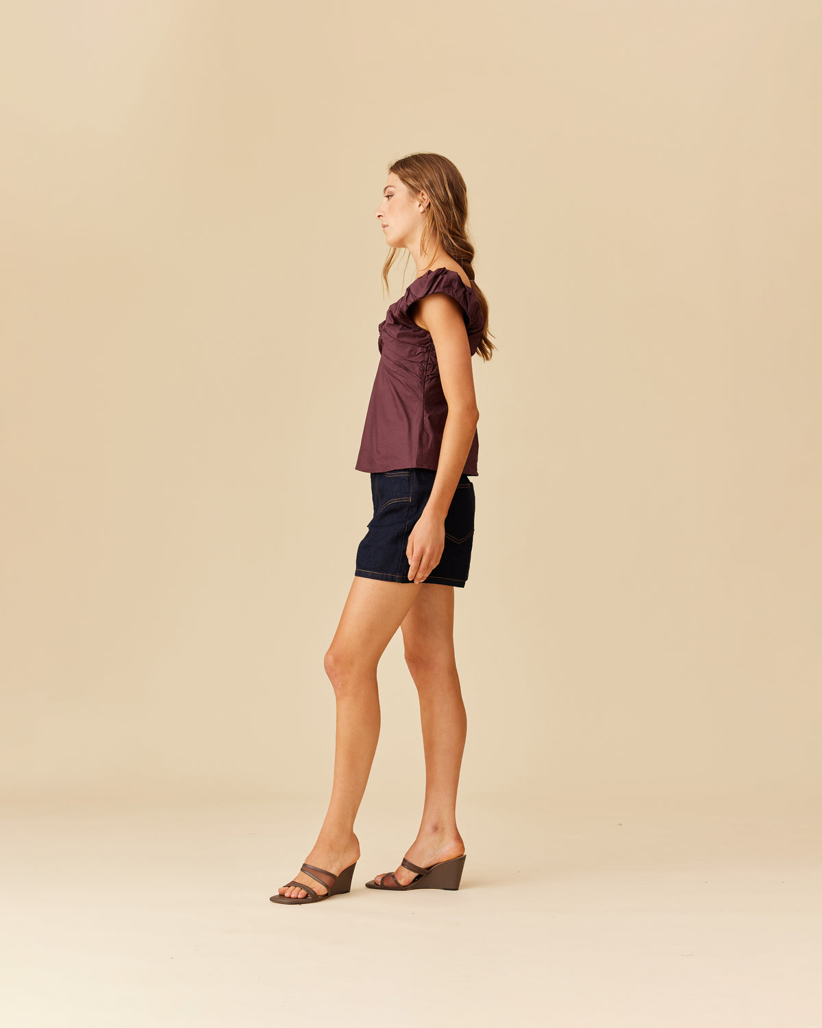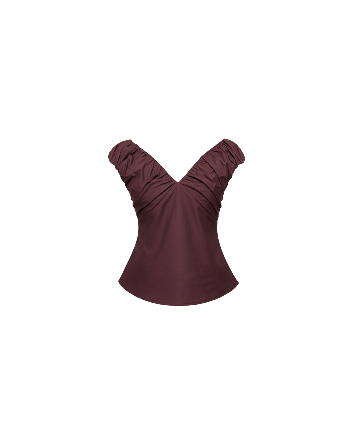 Crafted in a burgundy cotton fabric with ruched detailing at the bust, this top can be worn on or off the shoulder. The tailored fit is designed to sit close to your body without feeling too tight.